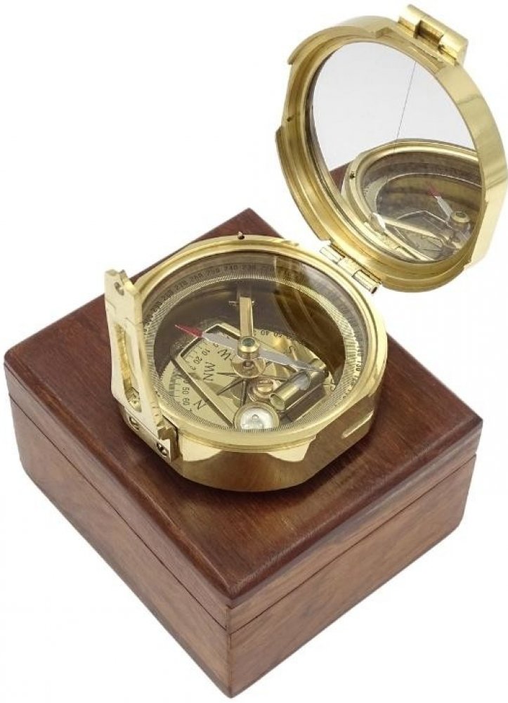 Kompas Brunton je vysoce přesné technické zařízení pro provádění různých výpočtů. Tento elegantní a odolný mosazný kompas je zabalen ve vkusné dřevěné krabičce, takže je vhodný jako dárek. Model Brunton je navíc vybaven zrcátkem a zaměřovacím zařízením pod víčkem. Ty usnadňují pochodování podle azimutu. Špička magnetické jehly ukazující sever je zbarvena červeně. Na pouzdře je umístěna sinusová tabulka. Kompas je rovněž vybaven libelou pro určování malých úhlů sklonu přímek nebo rovin vzhledem k vodorovnému nebo svislému směru. Specifikace kompasu Brunton: Materiál: mosazBarva pouzdra: mosazKompas v krabičce - uzamykatelnýZrcátko a zaměřovač pod víkemLahvičkaSinusová tabulka na pouzdřeRozměry: 7,5 x 7 x 3,5 cm Krabička: Materiál: dřevoRozměry: 10,5 x 9 x 6 cmPolstrovaná modrým materiálem Kompas Brunton se bude hodit jako: Dárek pro geodetaDárek pro inženýra Přesný kompas pro cestovatele