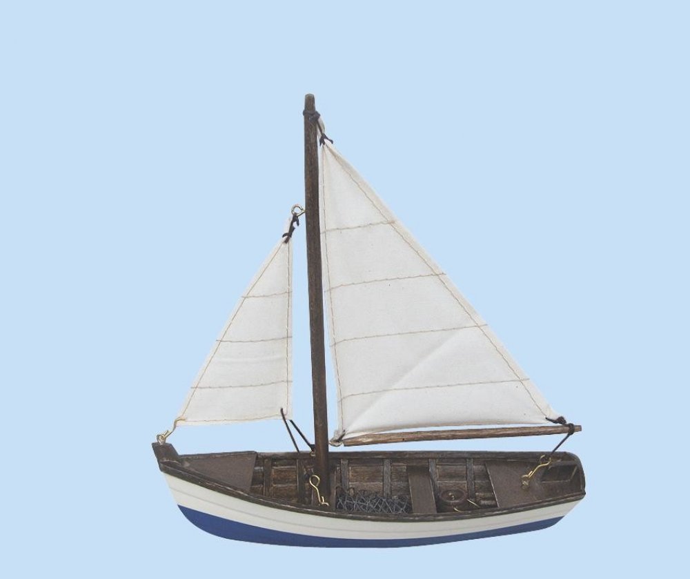 Detailně propracovaná dřevěná replina plachetnice s modrobílým trupem a bílými plachtami o délce 19 cm a výšce 20 cm.Krásný model plachetnice, který bude velmi pěkně vypadat na kancelářském stole či v obývacím pokoji laděném do módního námořního stylu. Materiál: dřevo, mosaz, plátno (pozn. plátno a mosazné komponety se nevyskytují u všech modelů).Délka: 19 cmVýška: 20 cmModel je dodáván (s ohledem na dopravu) v částečně rozloženém stavu. Jeho sestavení je velice jednoduché a zabere jen pár minut. Prakticky stačí nasunout pouze stěžně na trup. Plachty a veškeré lanoví je již sestaveno.Návod na sestavení je přiložen.