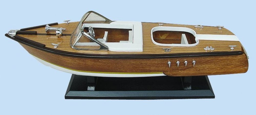 Krásný model motorové lodě v retro stylu na podstavci o délce 50 cm a výšce 15 cm.Dřevěná motorová loď může doladit interiér každého příznivce rychlosti, volnosti a větru ve vlasech. Materiál: dřevo, mosaz, plátno (pozn. plátno a mosazné komponety se nevyskytují u všech modelů).Délka: 50 cmVýška: 15 cmZboží je k zákazníkovi s ohledem na dopravu dodáváno v rozloženém stavu a s přiloženým návodem na...