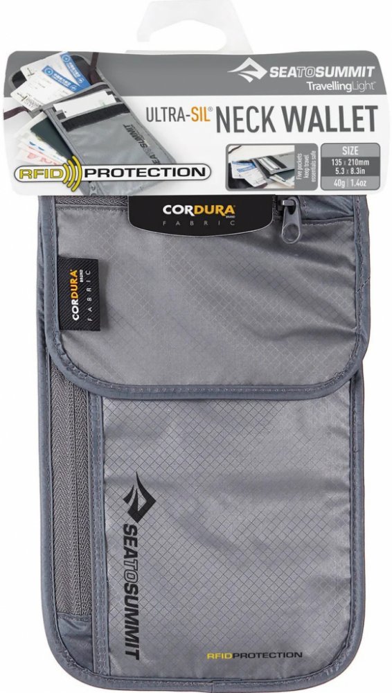 Cestovní peněženka Sea to Summit Neck Wallet s RFID ochranou proti skenu platebních karet.