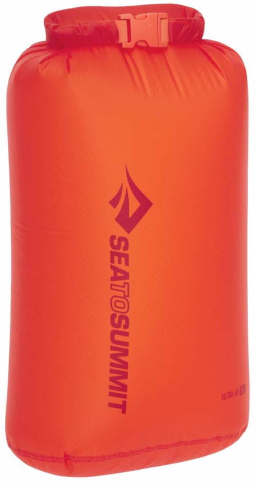 Lehký nepromokavý vak Sea To Summit Ultra-Sill Dry Bag s rolovacím uzavíráním je vyrobený ze silikonizovaného materiálu Ultra-Sil® a vysoce pevné tkaniny Cordura®. Rolovací uzávěr vaku je vyztužen Hypalonem. Své využití najde nejen mezi vodáky, ale také u baťůžkářů, cyklistů, cestovatelů a všech co chtějí ochránit své věci před vlhkostí. Barevná různorodost a průsvitnost vaku je ideální na organizaci věcí v zavazadlech. Každé položce v zavazadle můžete přidělit svou barvu. Částečná průhlednost dopomůže k snazší orientaci v uloženém obsahu. Jsou kompletně vzduchotěsné takže je můžete použít i jako vakuovací pytle ke snížení objemu oblečení.