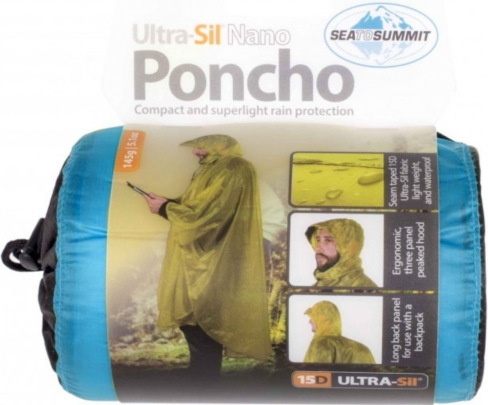 Sea To Summit Ultra-Sil15D Nano Tarp Poncho, nylonové multifunkční pončo. Vyrobeno z lehké cordurové tkaniny, která je na líci ošetřena silikonovou vrstvou. To výrazně zvyšuje její vodoopudivost a sbalitelnost. Ergonomická kapuce dostatečně překryje i čepici a chrání vás před nepřízní počasí. Rozšířený střih na zádeh zakryje i batoh Poutka v cípech umožňují ukotvení ponča jako přístřešku Voděodoln...