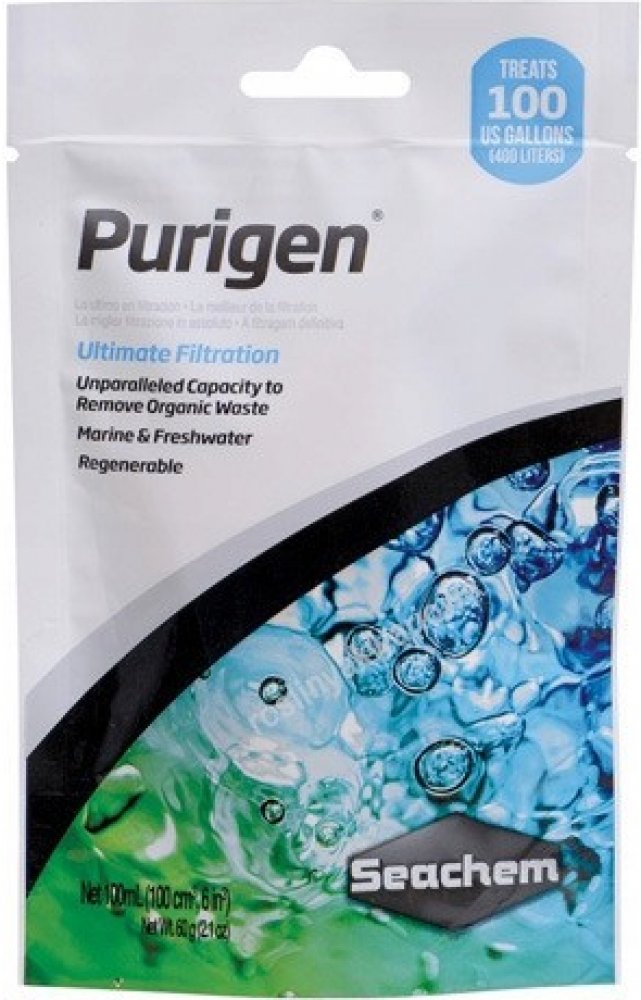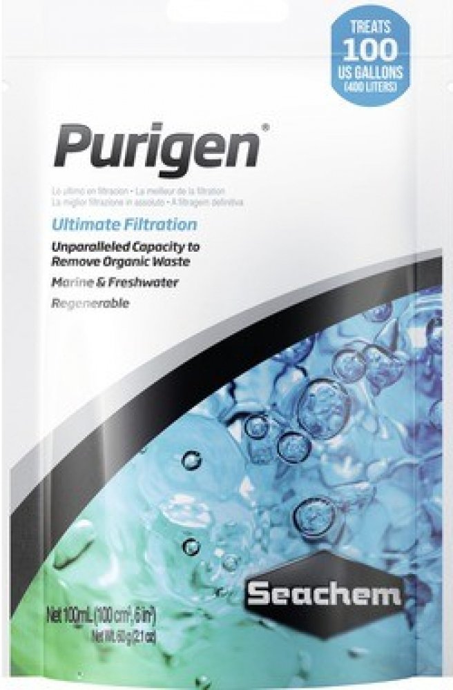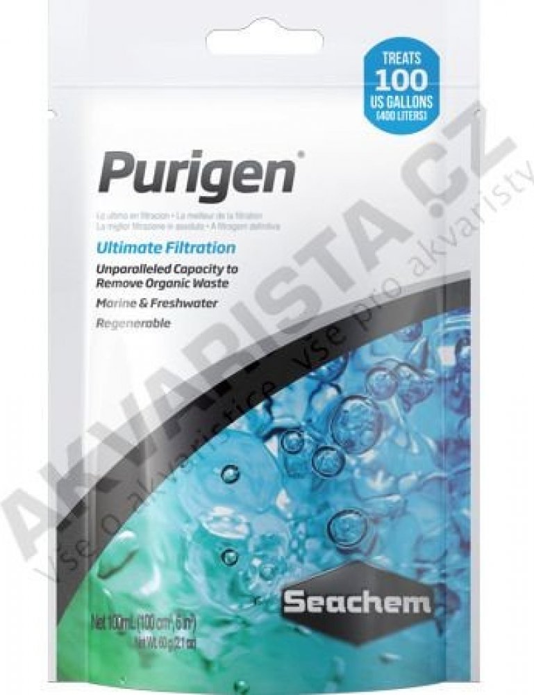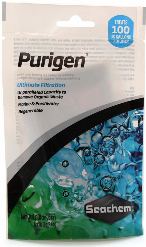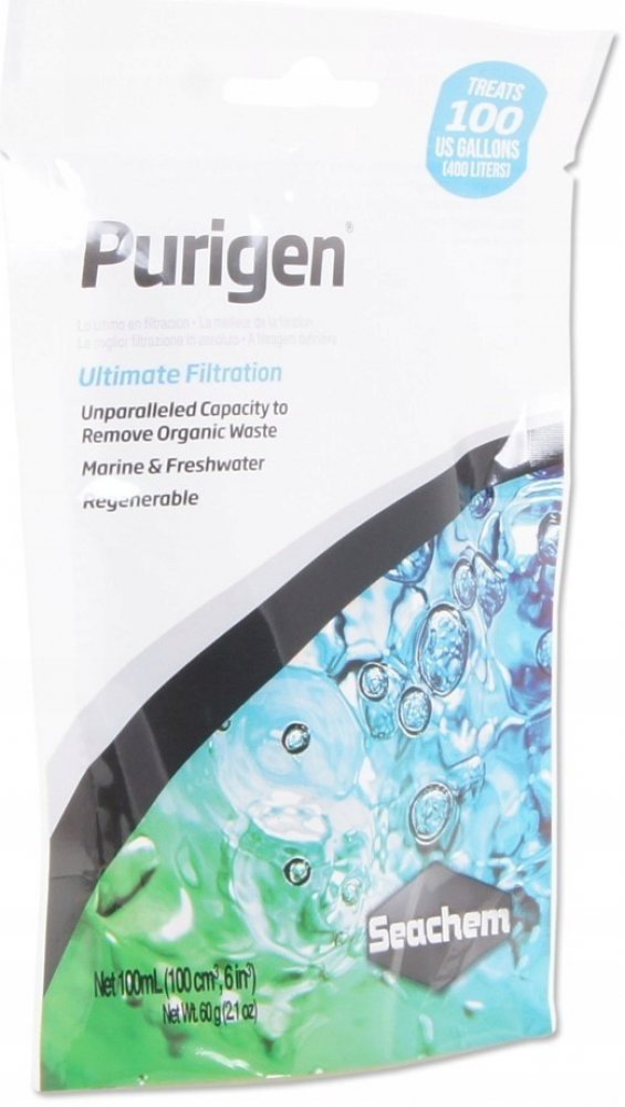 Purigen zachytává rozpustné i nerozpustné organické nečistoty (výkaly ryb, rozpadající se rostliny) a ty se tak nedostanou do filtru, kde by je bakterie přeměnily na méně škodlivé dusičnany. Dusičnany tedy Purigen snižuje jen takto nepřímo. Neodstraňuje je z vody však přímo. Pro tento účel doporučujeme použití Seachem deNitrate, který dusičnany snižuje přímo.