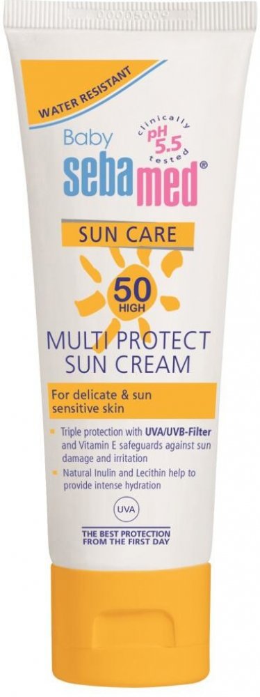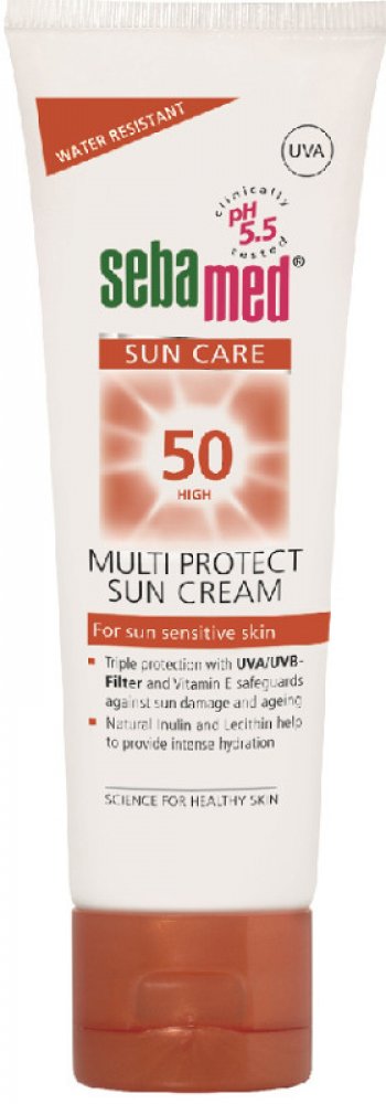 Tento opalovací krém s velmi vysokým ochranným faktorem OF 50+ poskytuje maximální ochranu citlivé pokožce obličeje a dalším exponovaným partiím před škodlivým UVA a UVB zářením a předčasným stárnutím. Obsahuje účinné UVA/UVB filtry a vitamín E.