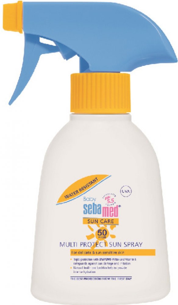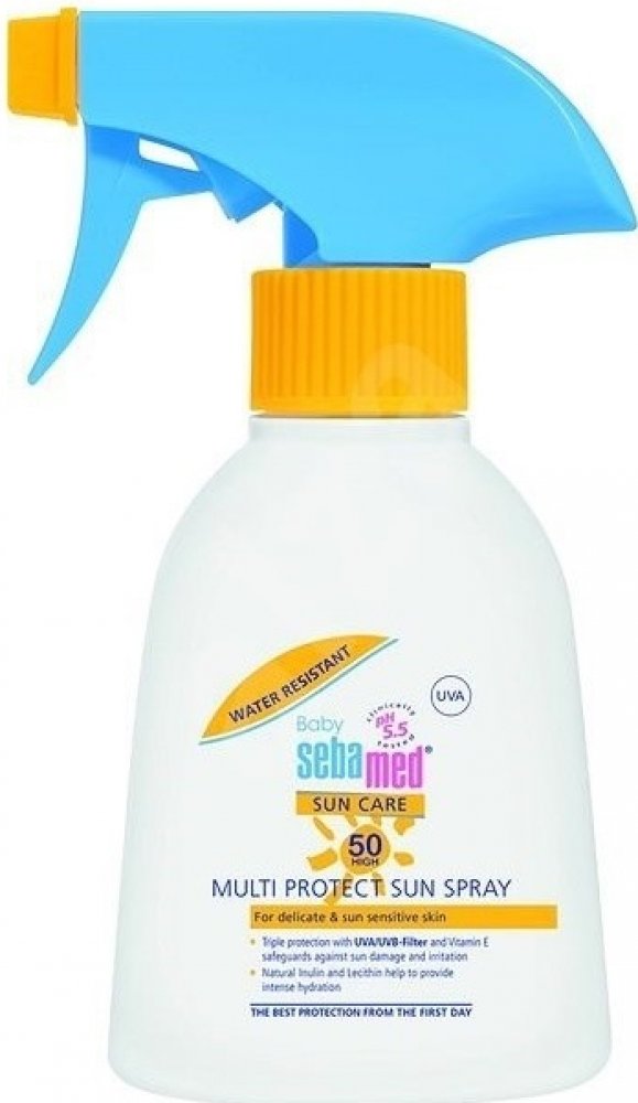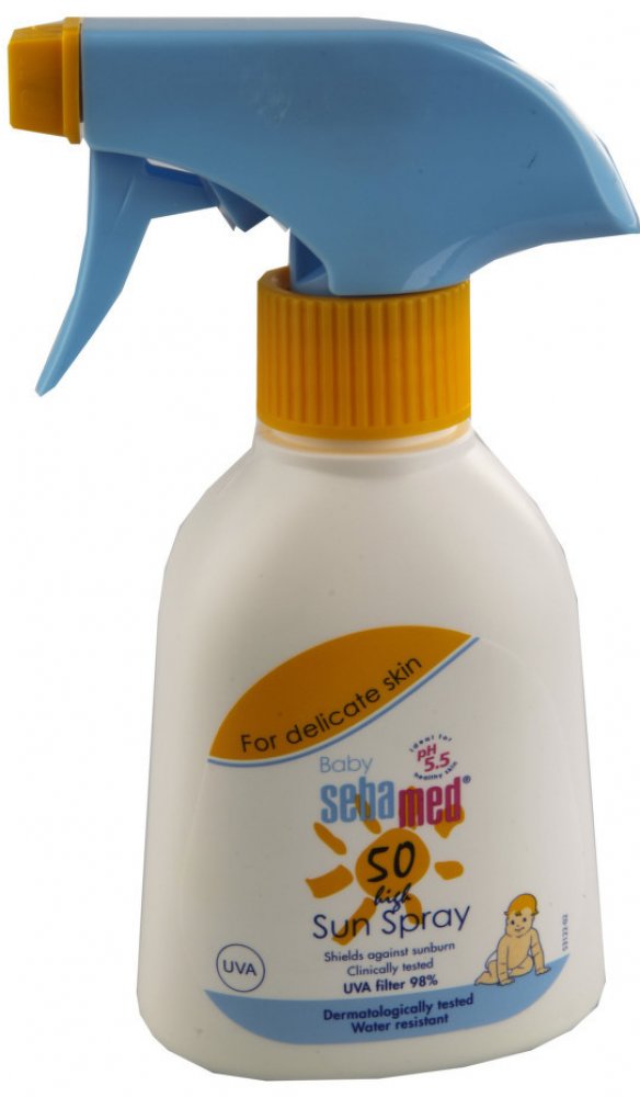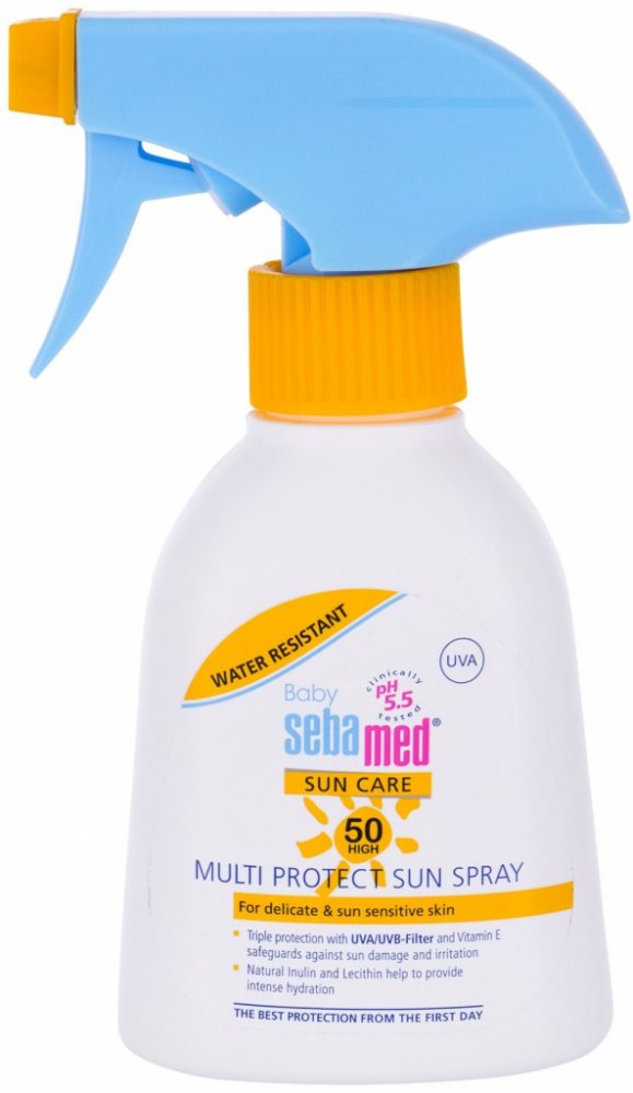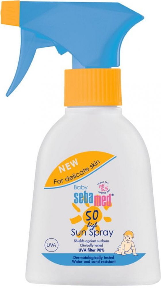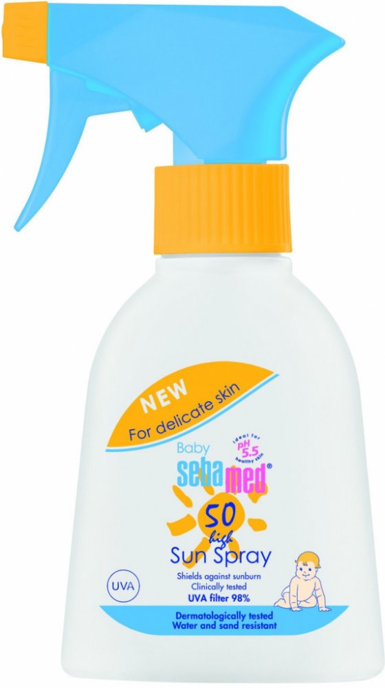Dětský opalovací sprej Sebamed s SPF 50 je ideální přípravek pro ochranu dětské pokožky před spálením. Vysoce efektivní UVA a UVB filtry poskytují spolehlivou ochranu před spálením a podrážděním pokožky. Vitamin E chrání pokožku dítěte před volnými radikály, hydratační komplex zabraňuje vysoušení pokožky. Opalovací sprej neobsahuje olej a neucpává póry. Je odolný vůči písku a vodě, snadno se nanáší a nezanechává mastnou bílou stopu.