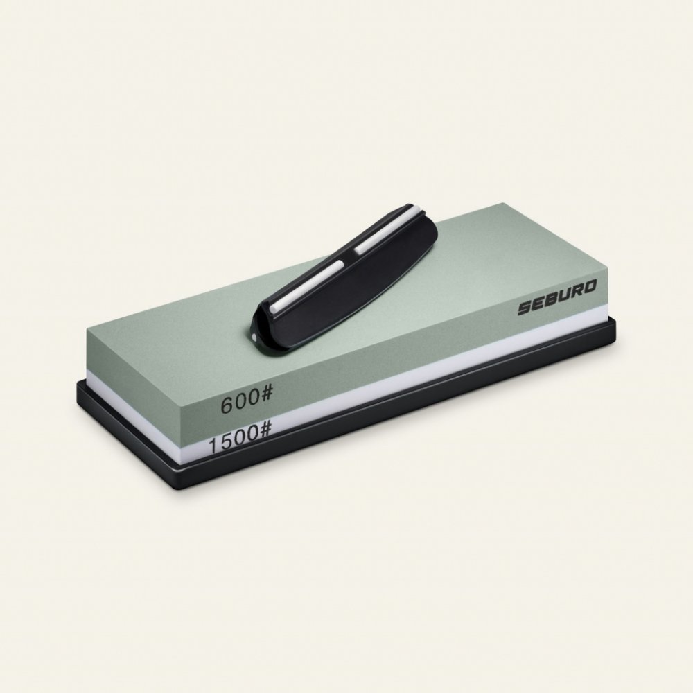 Kombinovaný brusný kámen japonského typu Seburo ExtraSharp, zrnitost 600/1500. Jedna strana se zrnitostí 600 vhodná na hrubé předbroušení, druhá strana se zrnitostí 1500 vhodná pro dobroušení.
