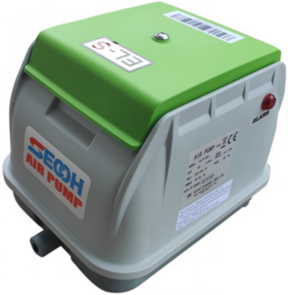 Efektivní membránové dmychadlo pro domovní biologické ČOV. SECOH dmychadlo EL-S-60N je efektivní membránové zařízení ideální pro domovní biologické čistírny odpadních vod. Nabízí spolehlivý výkon, tichý chod a nízkou spotřebu energie. Litinový kryt zaručuje odolnost proti vlivům prostředí, což umožňuje jeho použití uvnitř i venku. Díky signalizaci poškození membrán a bezpečnostnímu vypínači je zajištěna bezpečnost a ochrana zařízení.