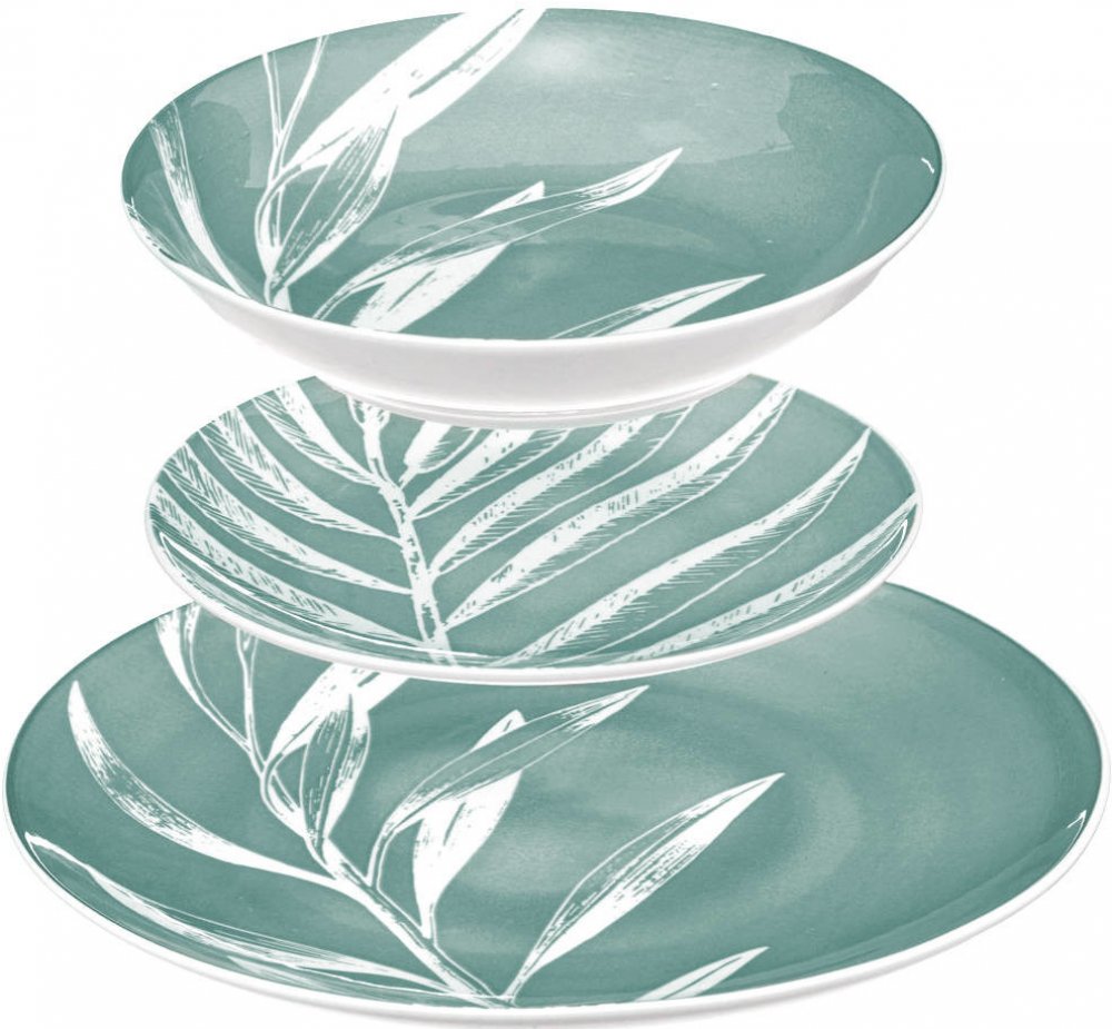 Jídelní souprava s listovým vzorem, 18 prvků, zelená barva