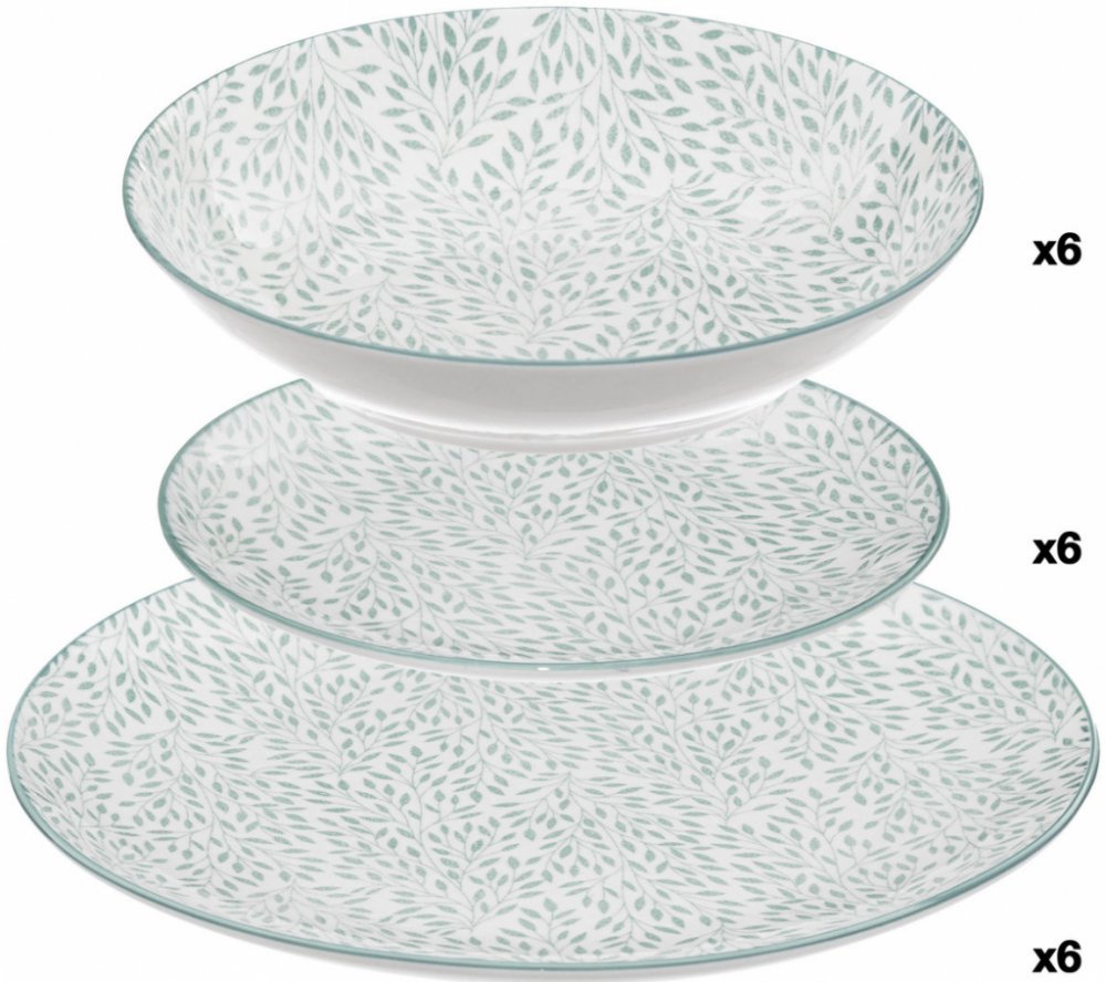 - 18-dílný komplet: Ideální jak pro 6člennou rodinu, tak pro jednotlivce, kteří rádi pořádají komorní večírky. Sada obsahuje 6 velkých talířů (26,5 cm), 6 snídaňových talířů (19 cm) a 6 hlubokých talířů (20 cm).