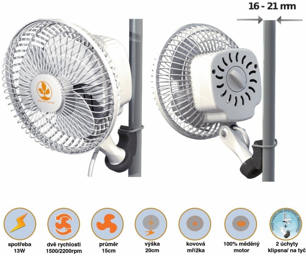 Ventilátor je vybaven magnetickým přímým pohonem. Nejsou zde použity žádná řešení na bázi oleje nebo maziva, takže je možné výrazně prodloužit životnost ventilátoru. Na funkčnost ventilátoru ECO FAN nemají vliv žádné extrémní změny mikroklimatu ve stanu, jako třeba vysoká teplota nebo vlhkost. Další výhodou tohoto produktu je jeho nízká spotřeba energie. Tento ventilátor neobsahuje klasickou klipsnu - místo ní má úchyt přímo na tyč stanu v rozmezí 16-21mm.