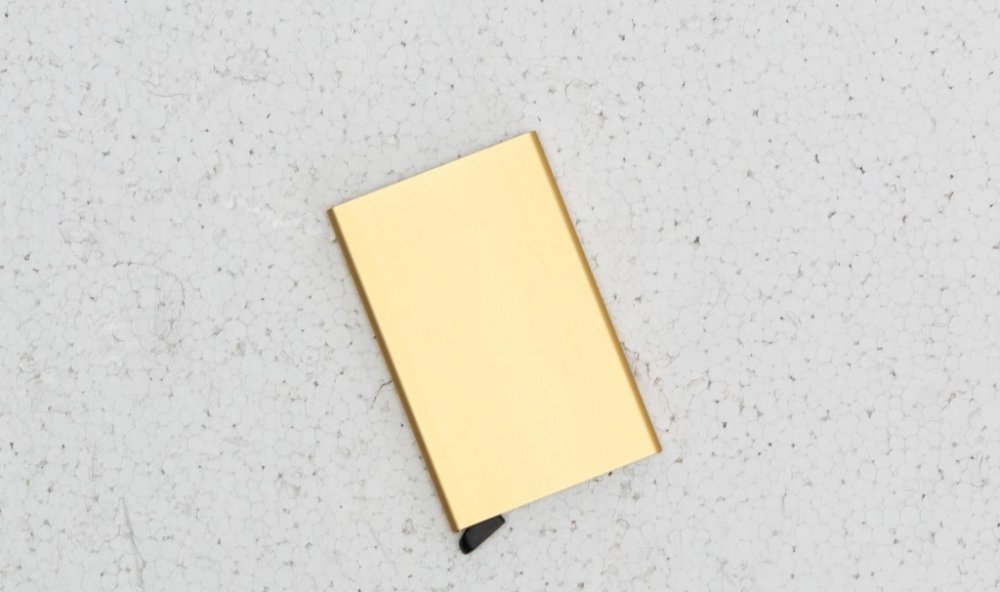 Ultratenké pouzdro z lehkého hliníku na 4-6 platebních karet. Zlatá barva, praktické vysunovací táhlo a RFID ochrana proti moderním kapsářům. Karty a nic než karty