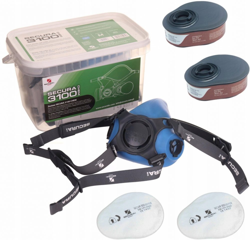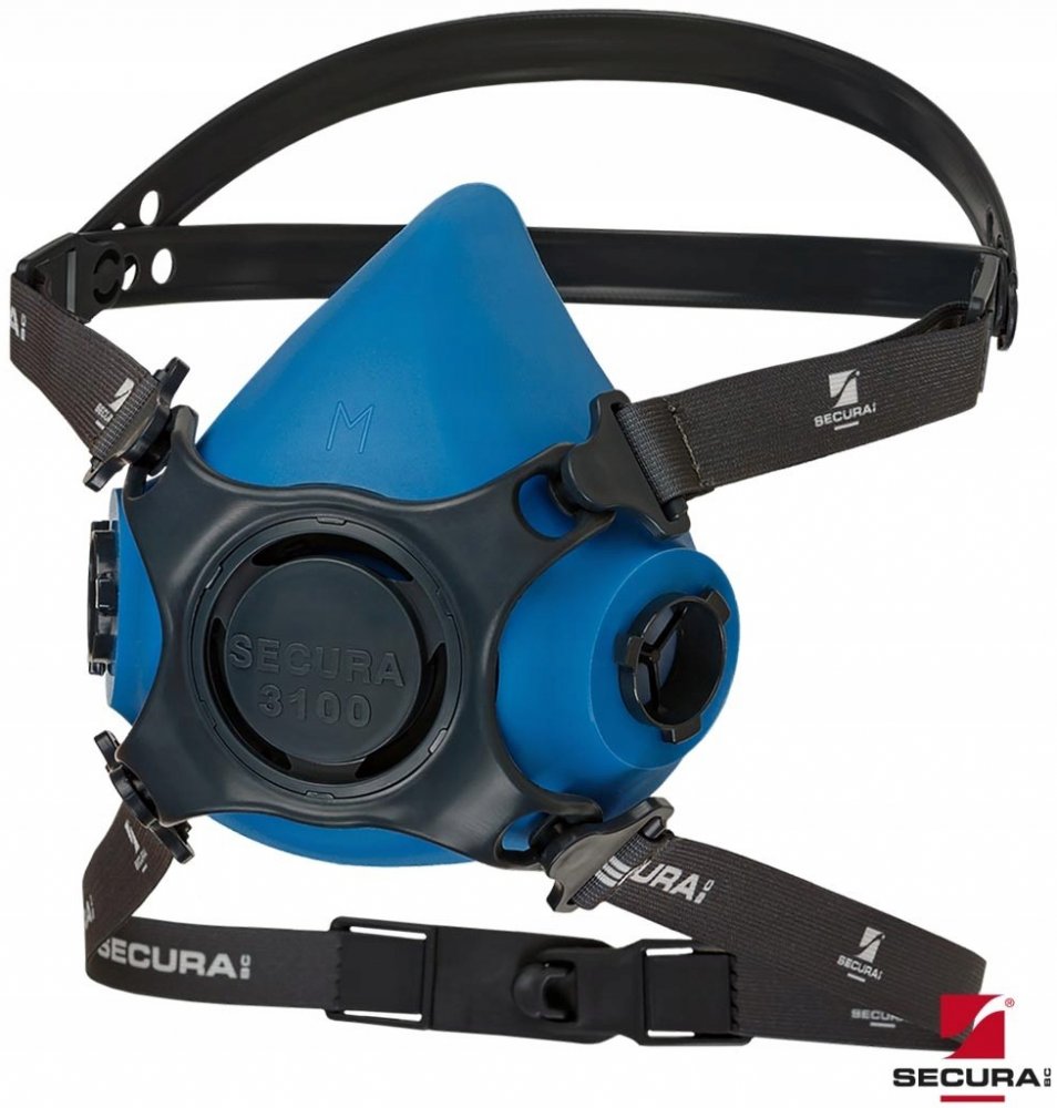 Kompletní sada připravená k použití Polomaska SECURA 3100 po kompletaci s příslušnými čisticími prvky představuje ochranné vybavení dýchacího systému proti škodlivým látkám vyskytujícím se ve formě: aerosolů (prach, kouř, mlha), par a plynů a obou těchto forem dohromady.