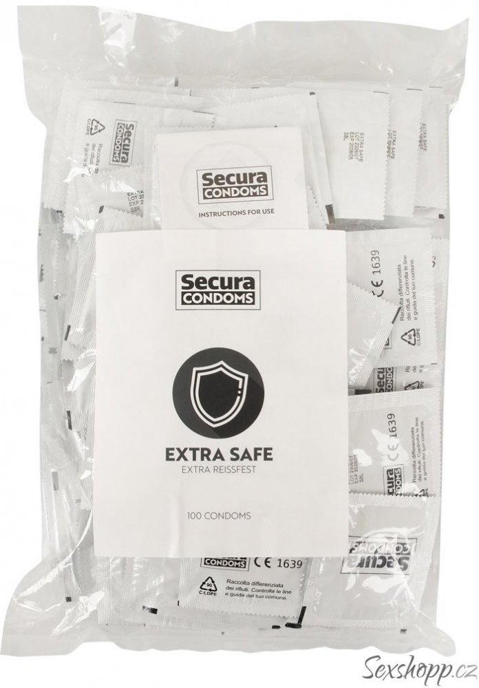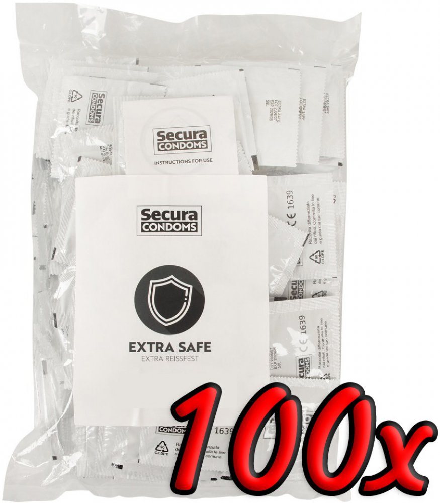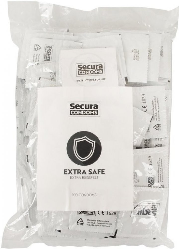 Extra silné steny pre extra výkon!Priehľadné kondómy Extra Safe od Secura pre dlhšie trvajúcu zábavu v posteli! Zvýšená hrúbka stien znižuje trenie o žaluď a kanálik, čím zvyšuje výdrž počas pohlavného styku. Okrem toho ponúkajú zvýšenú bezpečnosť počas análneho sexu. S povrchovou úpravou na báze silikónu pre dlhotrvajúcu lubrikáciu. Bez zápachu a chuti. Dĺžka 180 mm, menovitá šírka 52 mm.12 kusov...