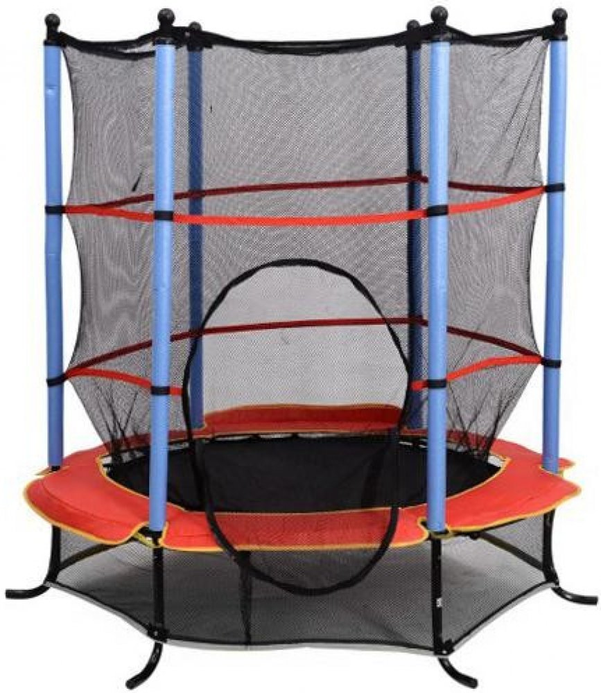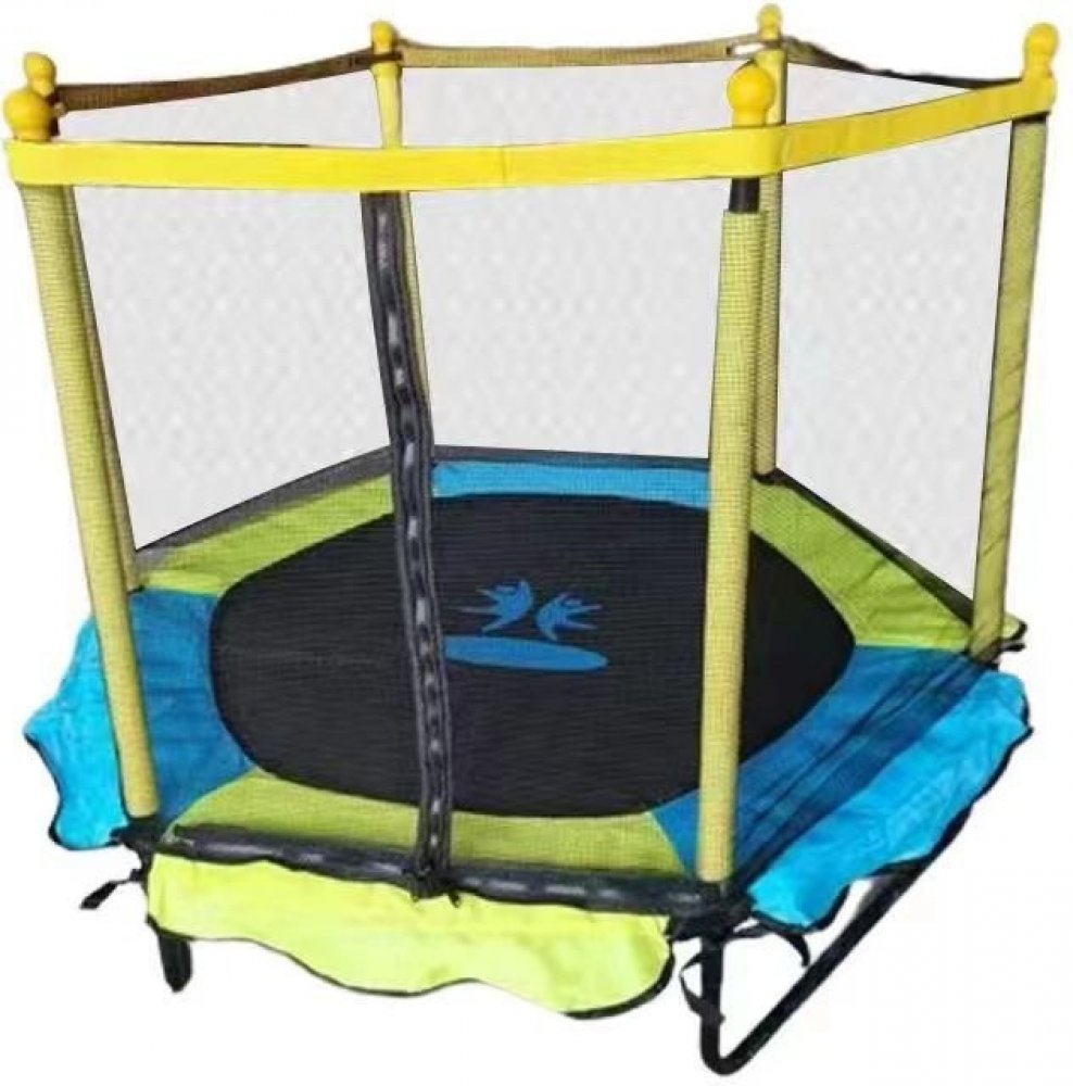 Dětská skákací trampolína s ochrannou sítí a pevnou konstrukcí s pozinkovanými ocelovými prvky. Trampolína je použitelná jak v uzavřených prostorech, školách, tělocvičnách, tak také venku (vhodné i na zahradu či hřiště). Jednou ze skvělých výhod je její odolností vůči nepříznivým povětrnostním podmínkám. Trampolína zajišťuje bezpečnost pro děti a je skvělým řešením i pro ty nejmladší.