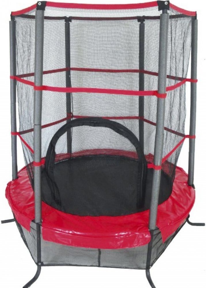 Trampolína Sedco obsahuje bezpečnostní síť, potahy a ochrané rámy v červeném designu, které jasně oživí celé okolí. Vnější průměr trampolíny je 139 cm.