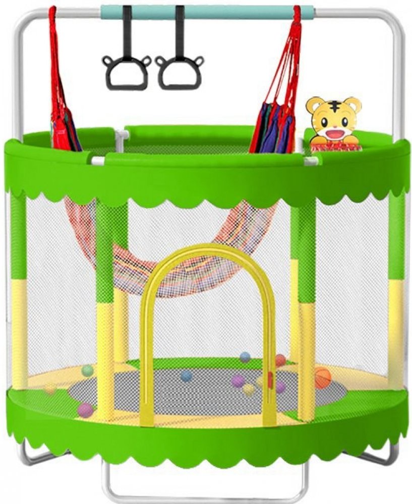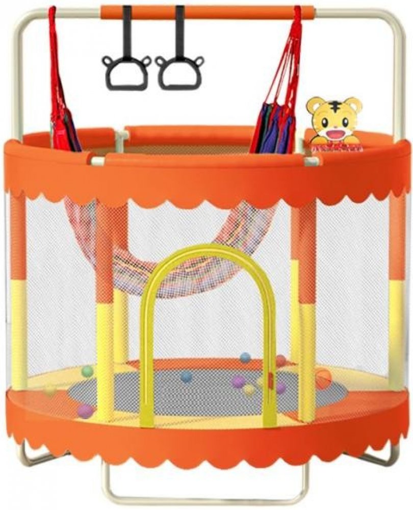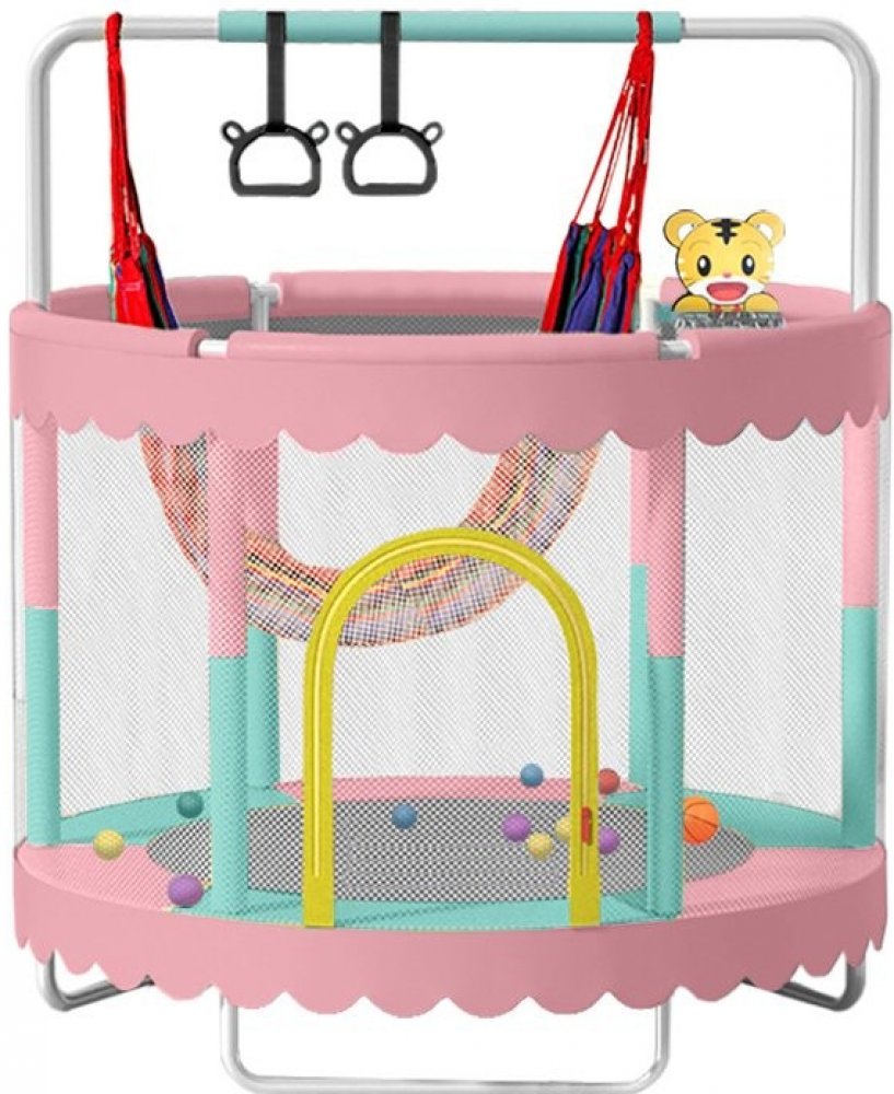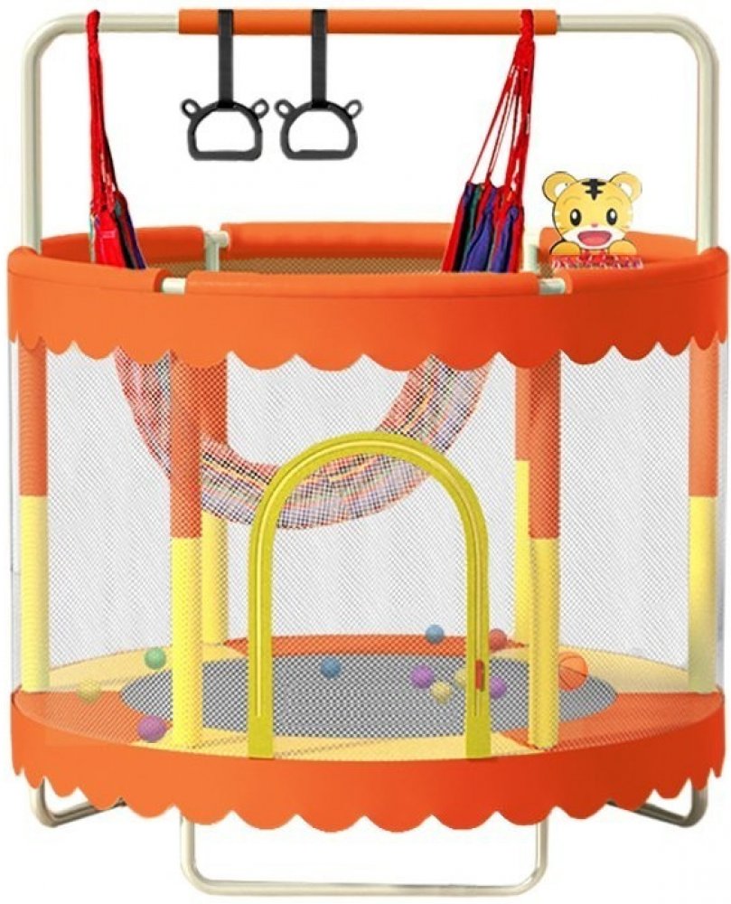 Moderní dětská trampolína o průměru 150 cm s ochrannou sítí,houpačkou a sadou hraček. Spolehlivý potah z odolného PE materiálu a výplní krytu 6mm. Pevná konstrukce i velmi dobrá odrazová schopnost jsou samozřejmostí. Stabilitu zajišťují odolné kovové nožky. PE Ochraná síť skvěle doplňuje bezpečnost. Vhodné pro vnější i vnitřní použití. V sadě také spousta hraček pro ještě příjemnější čas na trampolíně. Foto je ilustrační.