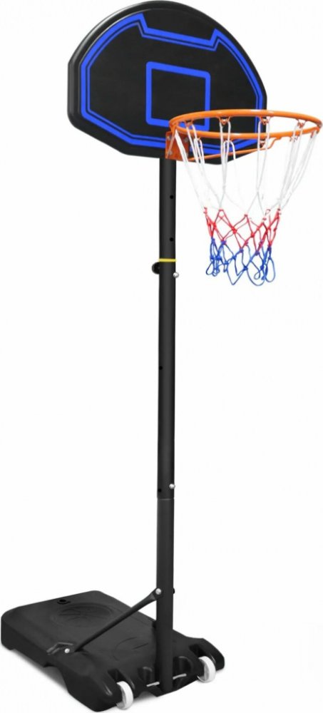Panel na basket se stojanem SEDCO BBH101 155-210 cm Praktický basketbalový koš Sedco BBH101 je ideální volbou pro děti i mládež, kteří si chtějí užívat basketbal doma na zahradě, v garáži nebo na hřišti. Díky nastavitelné výšce od 155 do 210 cm koš „roste“ spolu s dítětem a přizpůsobí se hráčům různého věku i schopností. Stojan je vyroben z robustní ocelové konstrukce s průměrem trubek 16 mm a je vybaven zadní deskou z odolného PE (73 × 46 cm). Kovový basketbalový obrouček má vnější průměr 41 cm a je opatřen práškovým nástřikem proti korozi. Součástí balení je i nylonová síť odolná proti povětrnostním vlivům, takže koš můžete bez obav používat jak v interiéru, tak i venku. O stabilitu se stará základna z pevného polyetylenu o rozměrech 76 × 46 × 14 cm, kterou lze naplnit až 37 litry vody nebo 30 kg písku. Díky zabudovaným kolečkům je manipulace se stojanem velmi snadná – koš jednoduše přesunete tam, kde ho potřebujete.