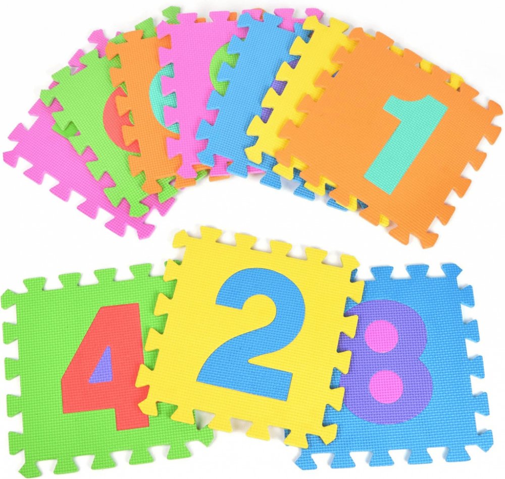 Zábavná podlaha s čísly pro dětské koutky a tělocvičny. Je vhodná všude tam, kde se pohybují malé děti. Školky, školy, dětské koutky. Lze z nich vytvořit hrací kouty, kdy není dětem chladno od podlahy.