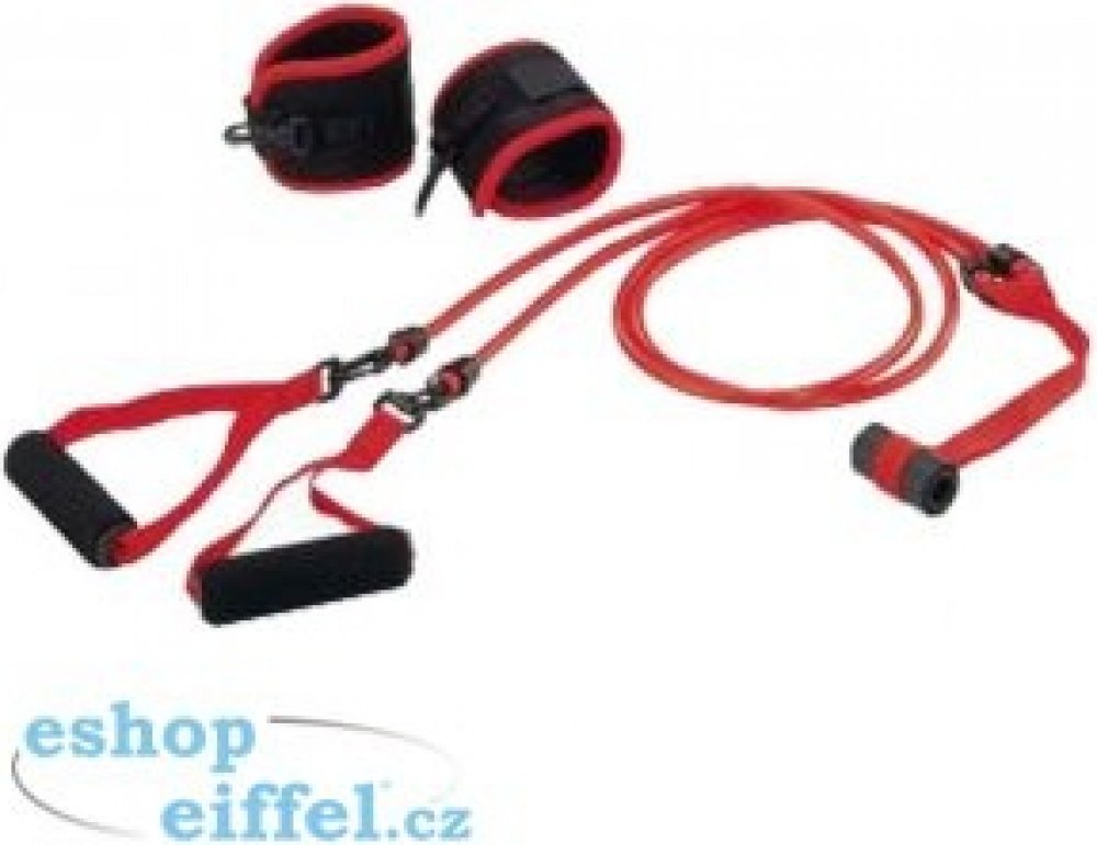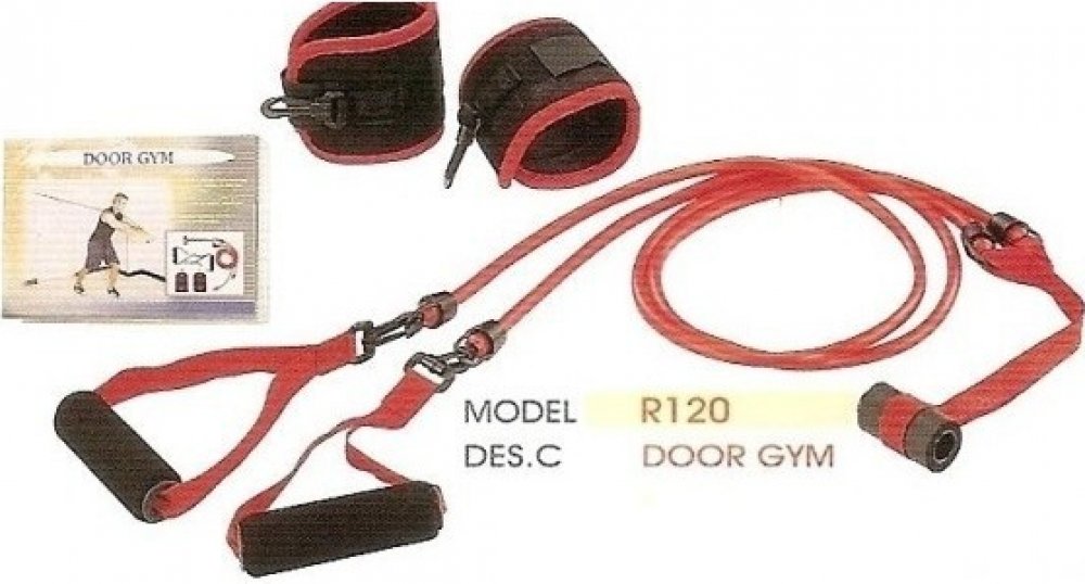 Gumový posilovač pro fitnes a rehabilitace. Posilovací systém Door Gym je vhodný jako pomůcka pro protažení před i po tréninku. Efektivně Vám pomůže zahřát svaly dané partie a omezí tak možné zranění, na které většina lidí zapomíná. Gumový posilovač posiluje a zpevňuje prsní, břišní svaly a svalstvo paží i nohou. Posilovací systém má dvě rukojeti potažené molitanem, které jsou odlehčené a zaručují maximální komfort při cvičení. Posilovač je moderní všestranná posilovací pomůcka určená k posilování celého těla v prostředí domova.