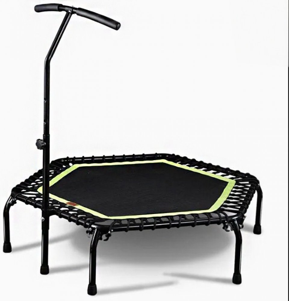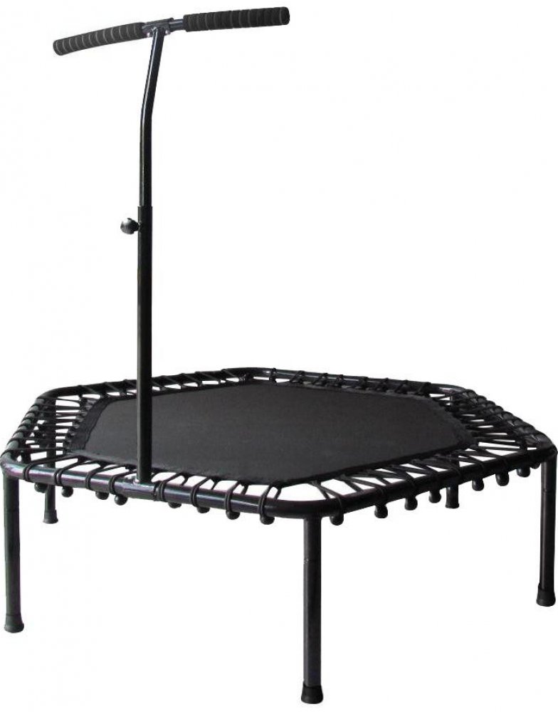 Hexagonální trampolína s průměrem Ø 122 cm + bezpečnostním madlem. Trampolína Hexagon je speciálně navržená pro kondiční cvičení s držadlem. Zlepšuje, jak koordinaci, tak stabilitu a celkovou rovnováhu těla. Zapojuje také všechny svaly na těle. Trampolína má ocelový rám a je vhodná pro vnitřní i venkovní použití. Jednou z dalších výhod je pevná dopadová plocha z odolného materiálu. TUV atest, velm...