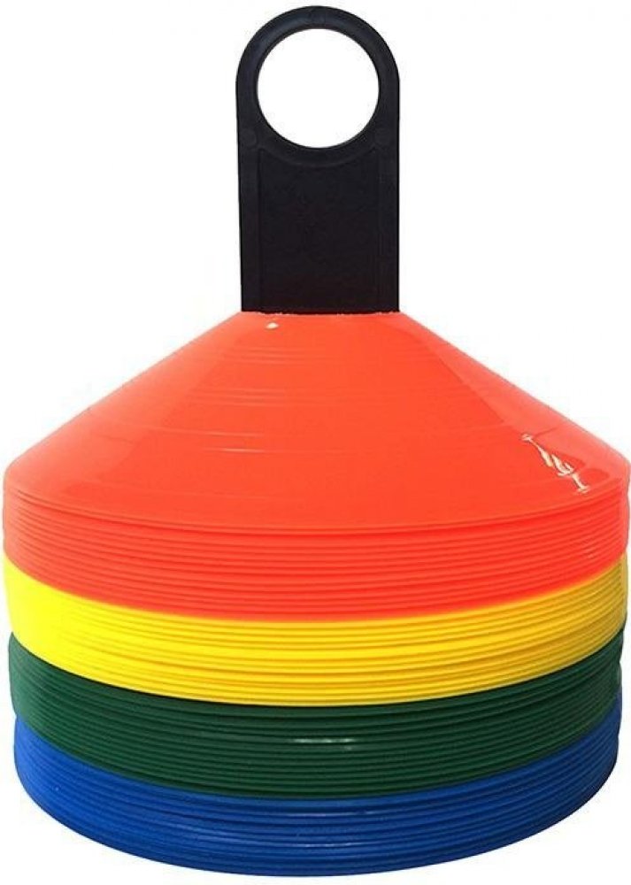 Jsou výrazně barevné kužely vyrobené z PP materiálu. Kvalitna základna o Ø20 cm. Určené pro označení terénu při na klubových trénincích na každém povrchu. Oka na špici modelu jsou určené pro uchycení gymnastických tyčí a vytváření mini překážek. Tato pomůcka je nezbytná pro každý venkovní nebo halový trénink.