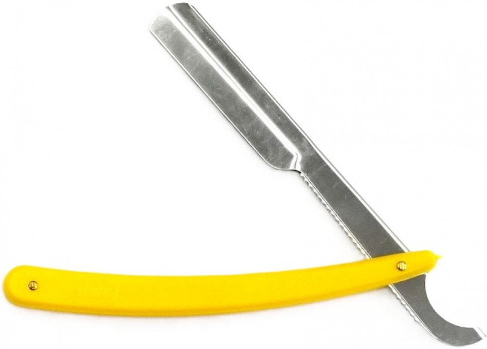 Jednoduchá žlutá shavetta na holení turecké značky Sedef na klasické půlené žiletky.