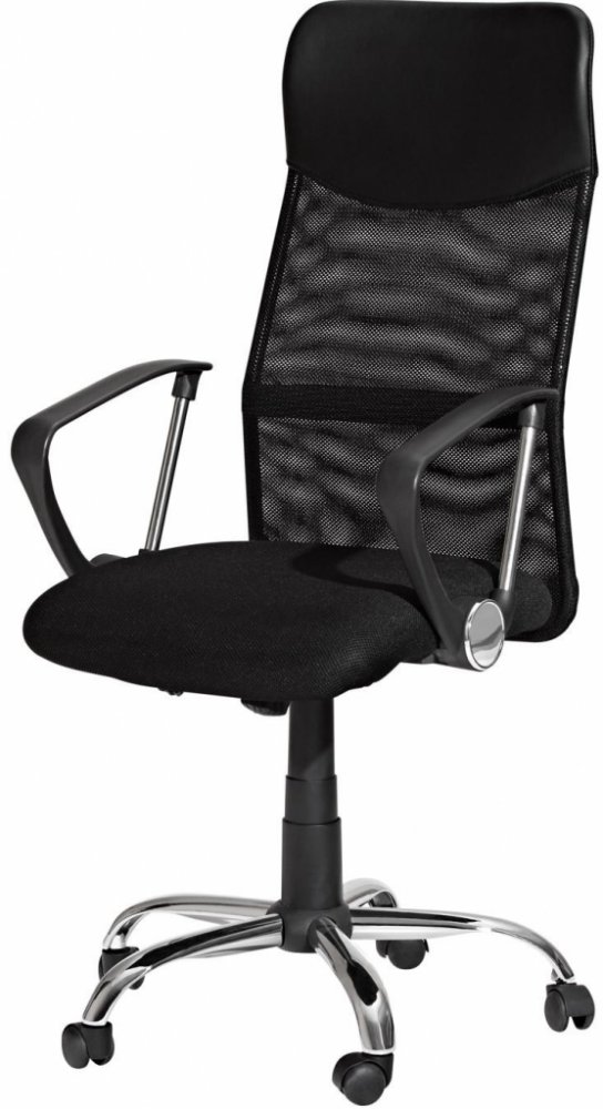 Součástí standardní výbavy židle jsou područky a plynový píst. Široký kříž nabízíme kovový chromový s černými plastovými kolečky, která si ale lze vybrat podle přání a konkrétního vybavení interiéru. Můžete si vybrat kolečka pogumovaná pro tvrdé povrchy (plovoucí podlahy, dřevěné podlahy a pod.) a v případě, že nechcete křeslo pojízdné si lze objednat u křesel pouze plastové kluzáky.