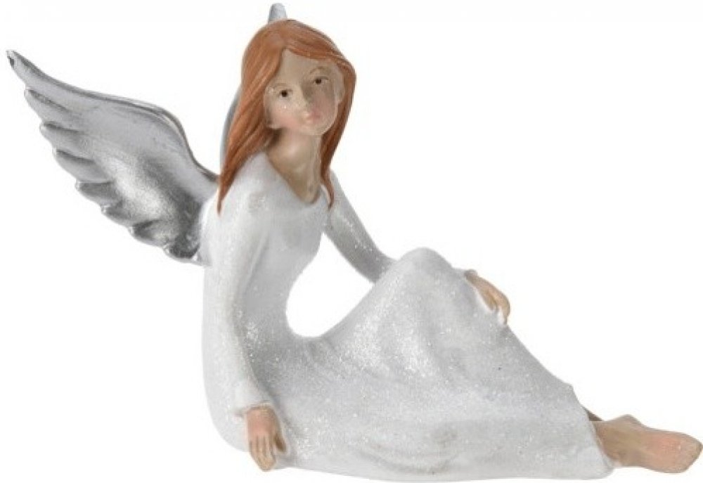 Polyresinový anděl se stříbrnými křídly a glitry.