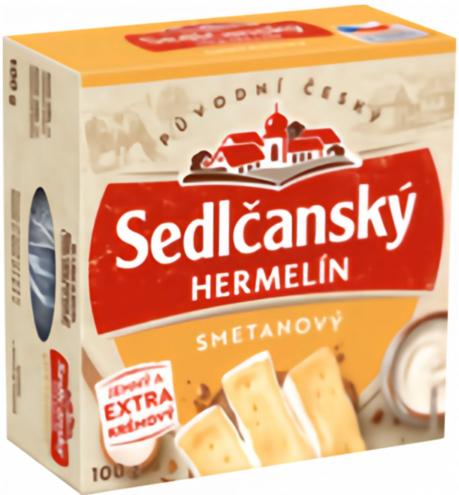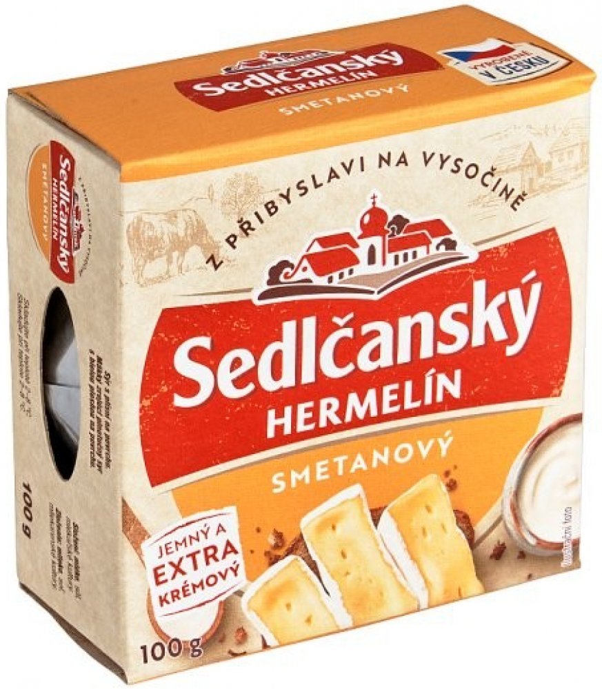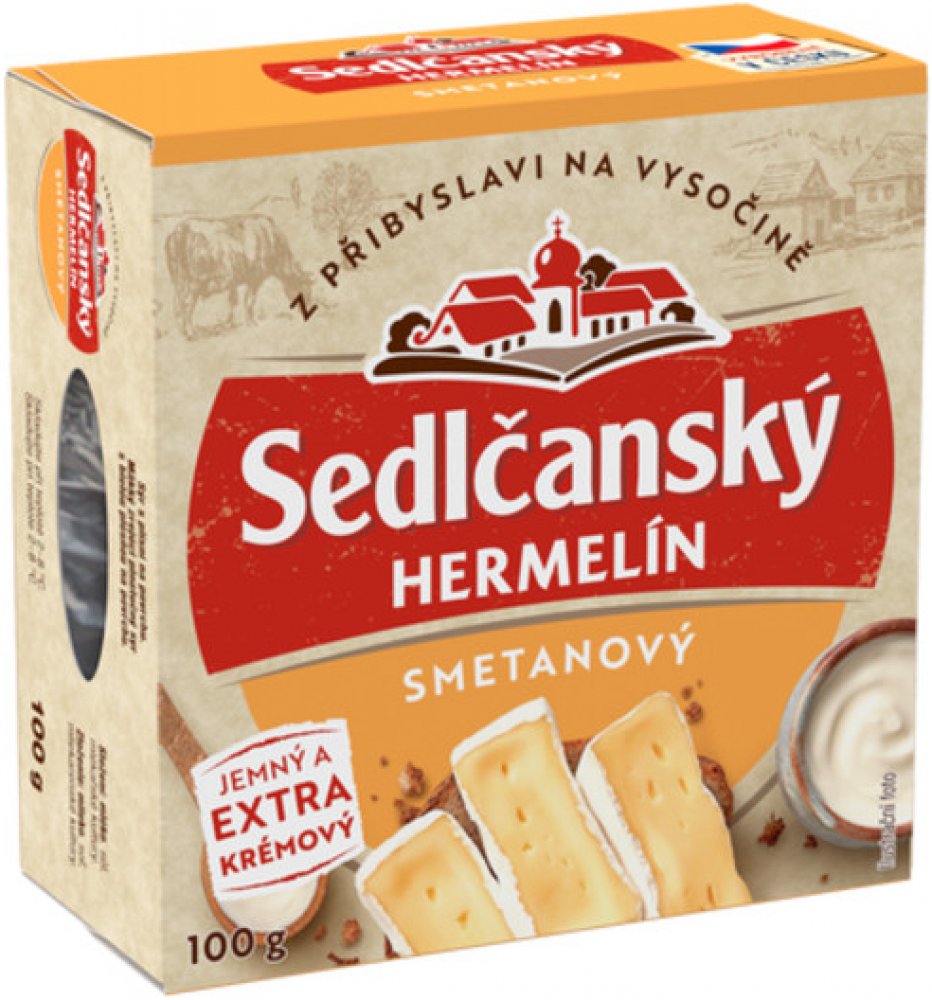 -- Sedlčanský Smetanový hermelín s extra porcí smetany má lahodnou máslovou chuť. V sýru se snoubí sytá a rozplývavá rextura a lehká vůně žampionů. Jeho sametově hebká konzistence se přímo rozplývá na jazyku.