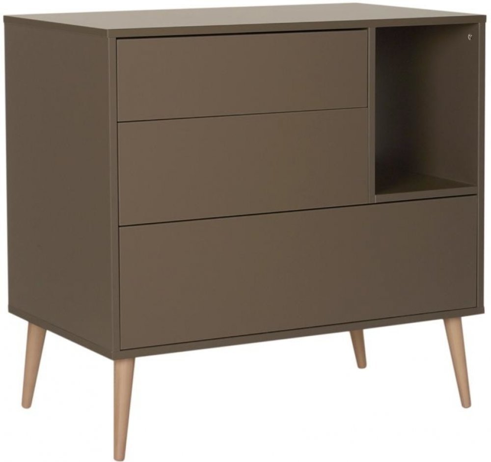 Moderní komoda Quax Cocoon je skvělou volbou do každého dětského pokoje. Moderní tmavý design a velké úložné prostory je ideální kombinace pro každou maminku, která chce mít vše důležité na jednom místě. Plenky, vlhčené ubrousky i oblečení se skvěle schová do tří prostorných zásuvek a poličky. Komodu lze využít samostatně nebo při dokoupení nástavby se z ní rázem stane přebalovací pult. Doporučujeme kombinaci více prvků z řady Cocoon, abyste vytvořili dokonalý kontrast a souhru v interiéru. Komoda Cocoon se skvěle hodí do minimalistických a skandinávských interiérů.