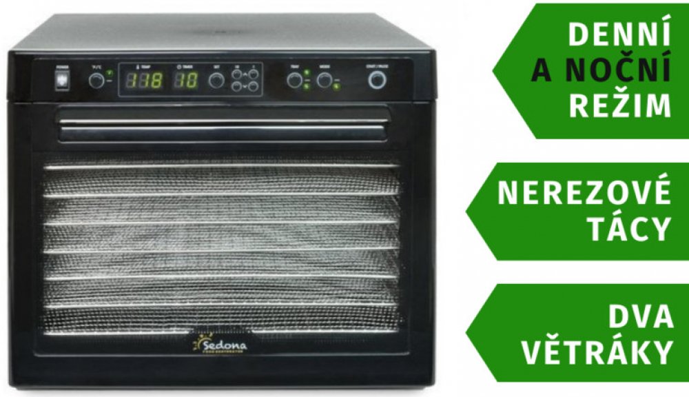 Sušička na ovoce SEDONA SD-S9000, 9 ks nerezových sít, digitální časovač, úsporné sušení pouze v polovině prostoru - Dehydrator SEDONA - ORIGINAL