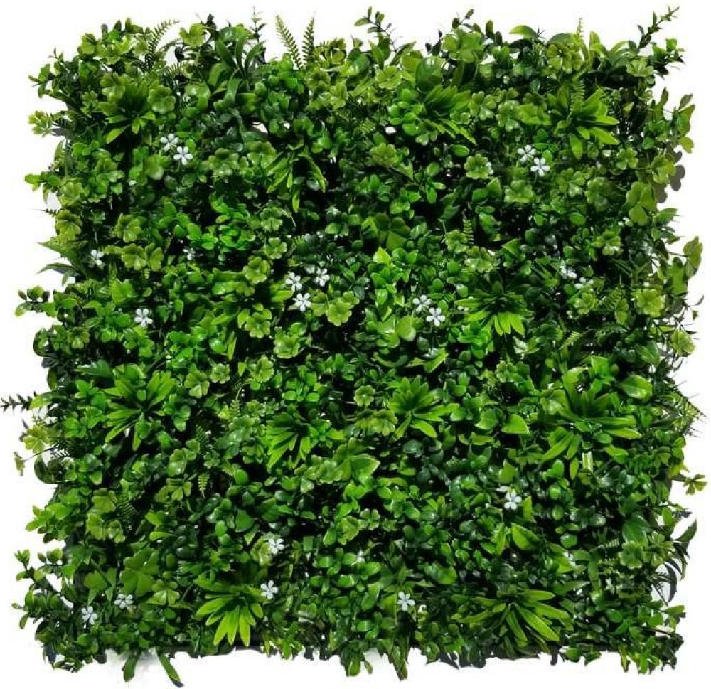 Nosnou kostru tvoří zelené plastové dílce z PE o velikosti 25x25 cm s vnitřním jemným rastrováním. Dílce jsou opatřené klipy pro snadné spojování dílců do velkých ploch.Základní dodávaná sestava z výroby obsahuje vždy 4 tyto sestavené dílce 25x25 cm do jednoho celku, který má celkové rozměry 50x50 cm. Dekorativní část plotu tvoří hustá skupina realisticky vyrobených listů, které jsou vsazené do plastového rastru. Materiál listů: polyetylén PE.Rozložení listů je pohledově jednostranné, druhá strana je tvořena plastovou mřížkou.Velice zajímavá a originální imitace bíle kvetoucího Rozchodníku.
