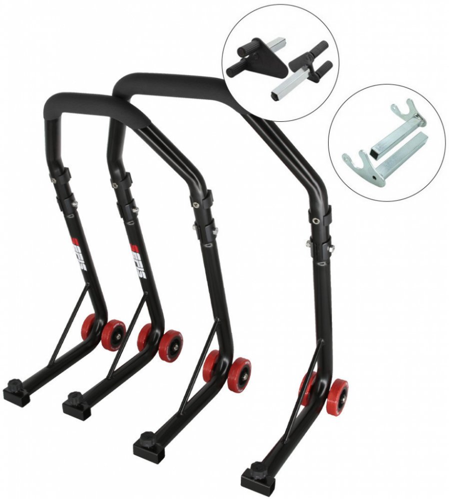 SEFIS D18 moto stojan přední a zadní set - černý - vidle / hákCE Certifikace