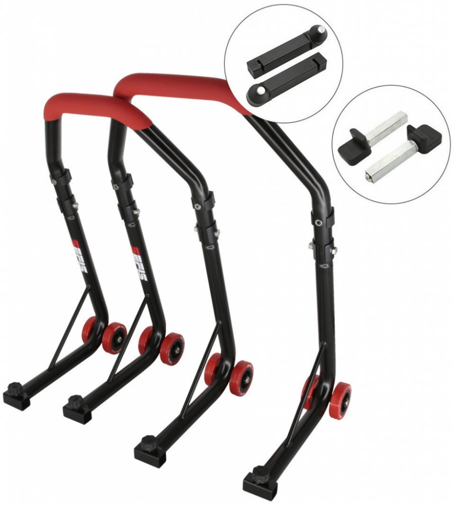 SEFIS D18 moto stojan přední a zadní set - červený - trn / packyCE Certifikace