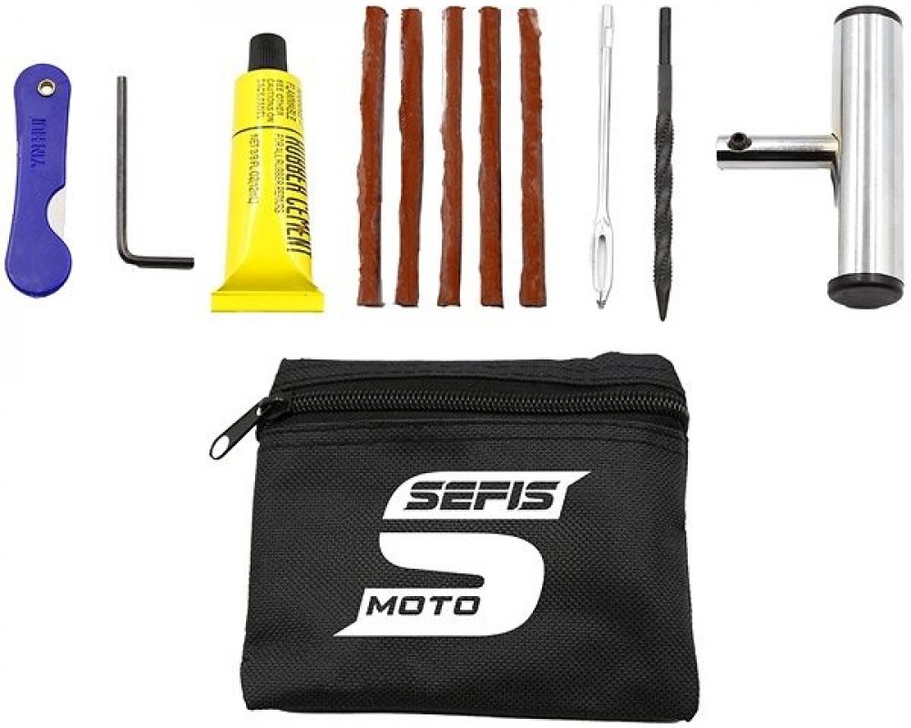 SEFIS Pocket sada na opravu bezdušových pneumatik kompaktní sada pro okamžitou opravu malých defektů pneu snadné použití které lze zvládnout i na cestách, umožní opravu a dojetí bez nutnosti volat odtahovou službu oprava pneu přímo na vozidle bez nutnosti sundavat a přezouvat kolo po opravě stačí počkat pár minut, dohustit pneumatiku a pokračovat v cestě hodí se k pohotovostní opravě defektů do průměru 5mm v běhounu pneumatiky není vhodná k opravám defektu bočnice pneumatiky a opravám velkých defektů hodí se pro opravu bezdušových pneu aut, motocyklů, čtyřkolek, skútrů, dodávek atd. rozměr balení pouhých: 110x130x28mm balení obsahuje: madlo, nožík, imbus, nebozez, šidlo, vulkanizační roztok, 5ks knotů