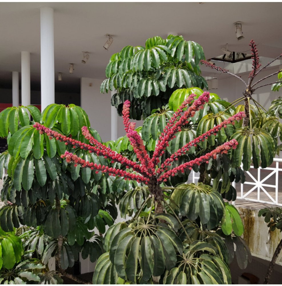 Šeflera actinophylla pochází z Austrálie a jihovýchodní Asie, kde se mu přezdívá deštníkový strom. Ve své domovině dosahuje výšky několika metrů, u nás dosahuje přibližně 150 cm.
