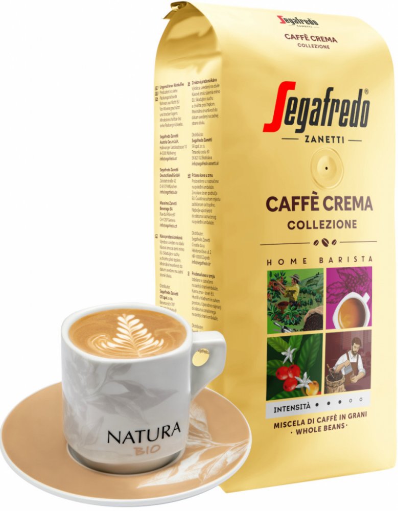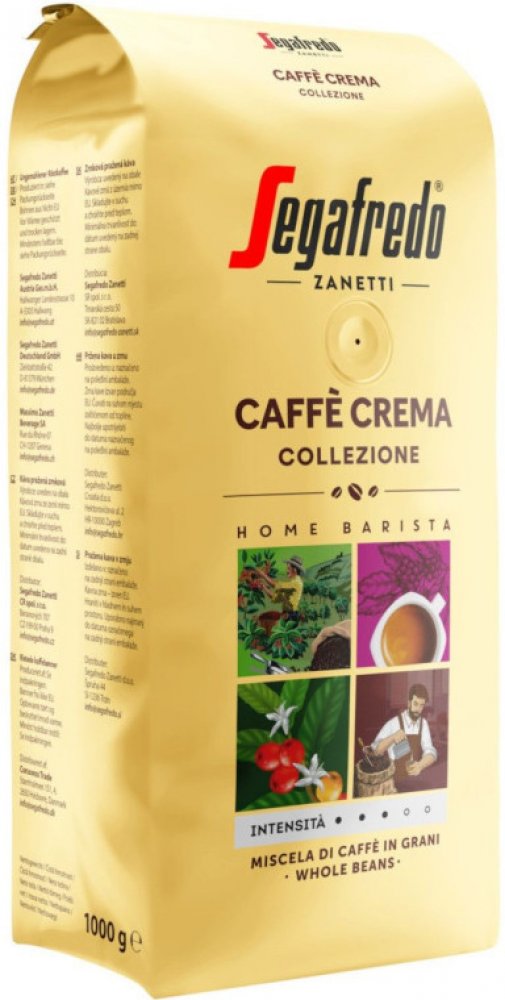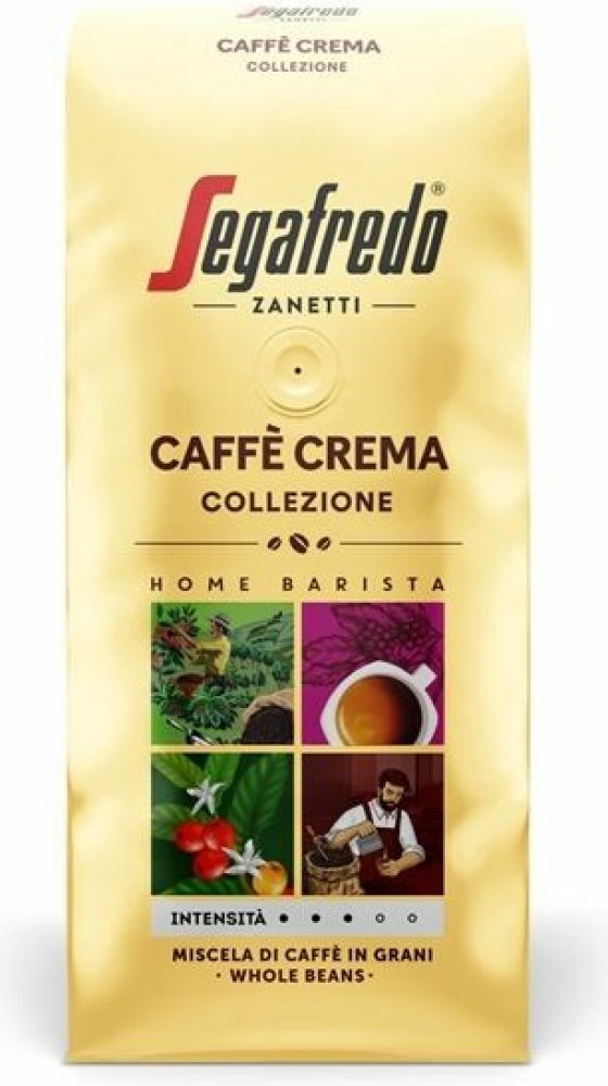Segafredo Caffe Crema Collezione je středně pražené, což mu dodává charakteristickou a rafinovanou chuť.Směs vyrobená z nejlepších zrn má hnědou, hustou crému a vyváženou chuť. Espresso se vyznačuje sametovou hladkostí a střední konzistencí. Jedná se o směs střední intenzity a bohatého aroma. Caffe Crema Collezione je určena pro tlakové způsoby vaření, bude chutnat dokonale při vaření v portafiltru, automatickém kávovaru, kávovaru nebo tradiční metodou. Kávová zrna Segafredo mají díky vysokému obsahu robusty vysoký obsah kofeinu. Díky tomu je káva ideální způsob, jak se ráno vzbudit.