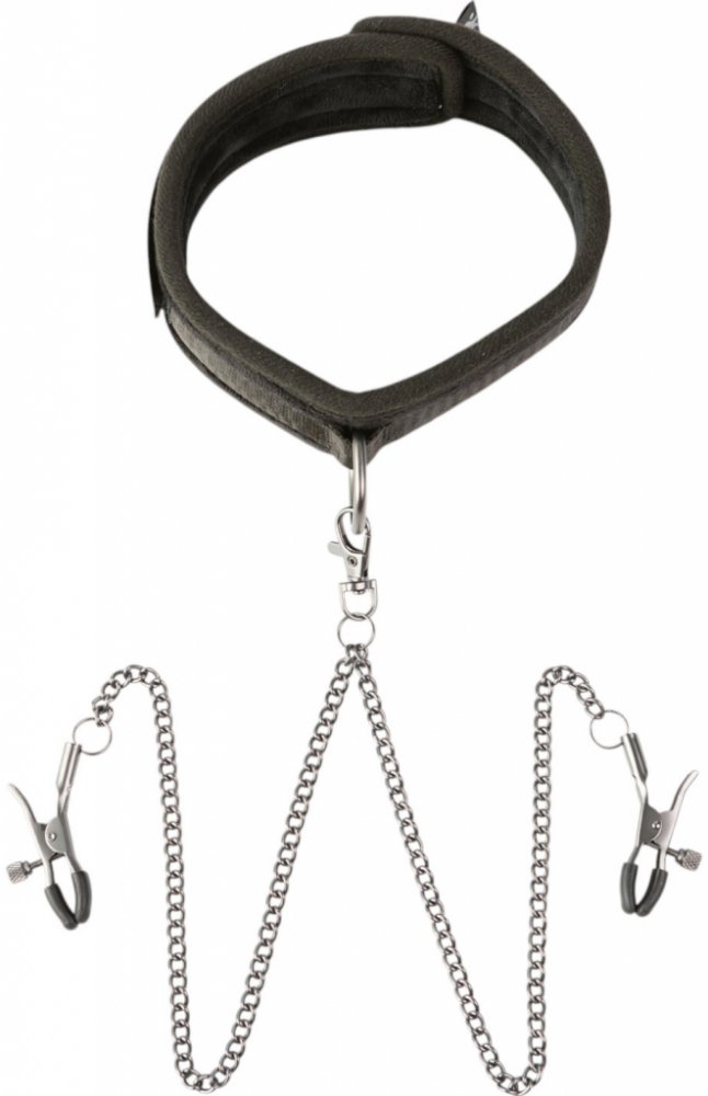 Tento úžasně zpracovaný obojek z umělé kůže s jemným povrchem se pohodlně přizpůsobí tvaru krku a vytvoří tak hravý základ pro bondáž.Proč je skvělý?Univerzální použití: Spony lze odpojit od obojku, takže je možné je použít i samostatně a variabilní hra je zaručena.Pohodlné nošení: Polstrovaný obojek a silikonem potažené spony zajišťují pohodlí při používání.Nastavitelná intenzita: Spony na bradav...