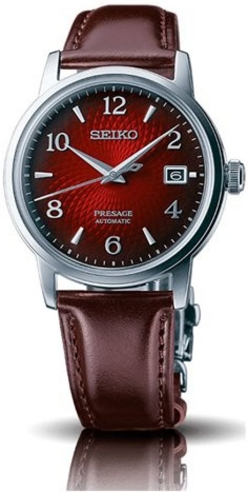 Kolekce Seiko Cocktail Time rozšiřuje svou nabídku o modely s novými číselníky, inspirované v tomto případě uměním mistrů baramanů a koktejlu "Negroni" podmanivě červené barvy. Hodinky jsou provedeny v novém designu s gilošovaným číselníkem a kombinací kasických indexů a arabských číslic na pozicích hodin.