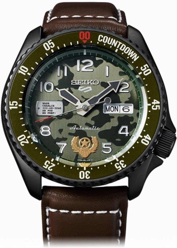 Seiko analogové kůže sportovní pánské automatické vhodné k plavání (50–100 m) 42.5 mm ocel 100 m automatické hardlex bez osazení Seiko 5 kulaté hnědá khaki na přezku 2 cm na ruku japonské maskáčové s arabskými číslicemi hnědá ocel střední jednosměrně otočná ocel 41 h kalibr 1330 20.0 mm 13.0 mm s dočasným svícením (luminiscence/LED) s občasnou údržbou (automatické)
