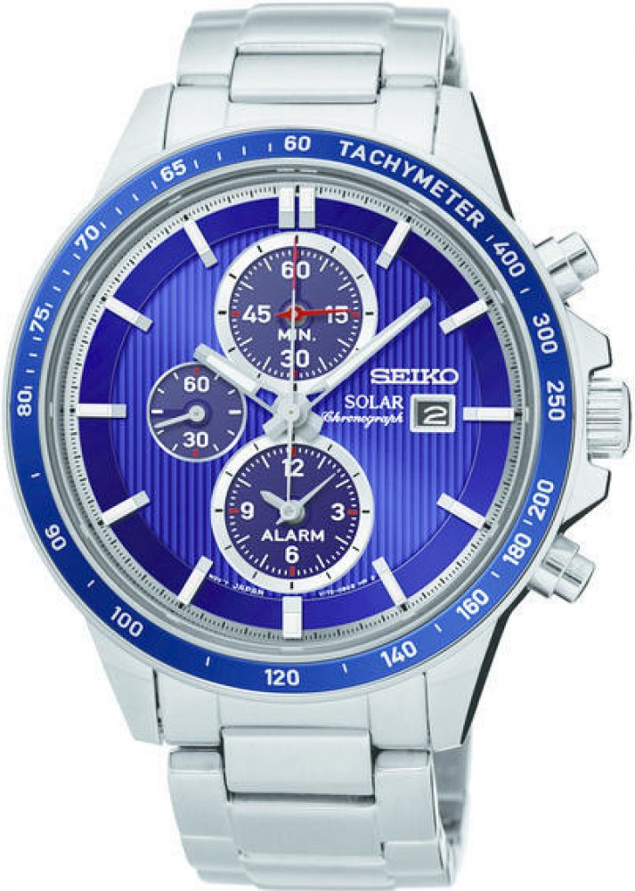 Podrobnosti o produktu SSC431P1 Pánské hodinky SEIKO SSC431P1 Sportovní pánské hodinky Seiko SSC431P1 s modrým ciferníkem jsou ideálním dárkem pro náročnější muže či sportovce. Hodinky jsou multifunkční a tak kromě času zobrazují také datum a obsahují stopky a budíky. Hodinky mají luminiscentní ručičky, takže uvidíte čas i večer nebo při snížené viditelnosti. Hodinky jsou celoocelové a pyšní se svou vysokou odolností a dlouhou životností. Seiko je průkopníkem hodinářských technologií, mezi nimiž je důležité jmenovat představení prvních quartzových hodinek. I nadále je značka hodinek Seiko vždy o krok vpřed a své hodinky vyrábí s mottem „inovace a elegance“. Firma Seiko nabízí nespočet hodinek ze kterých si rozhodně vybere každá žena i muž. Firma Seiko pochází z Japonska a pyšní se vysokou přesností, výbornou kvalitou a spolehlivostí. Vždy odpovídá nejmodernějším trendům v designu a technologie. Seiko solar jsou quartzové hodinky, které si berou energii ze světla a ukládají si ji do samonabíjecí baterie, která se nemusí vyměňovat. Seiko solar reagují na všechny druhy světla - stačí pouhá jedna minuta slunečního svitu a ručičky se začnou pohybovat, po třech hodinách osvitu je baterie plně nabita.