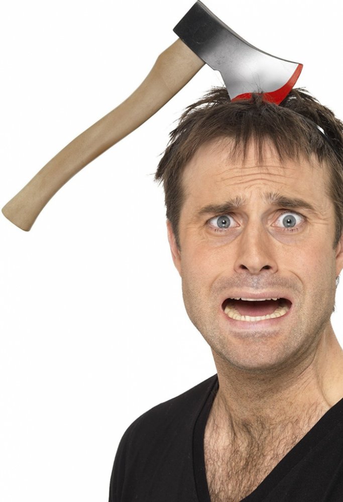 Pokud se chystáte na strašidelnou party a chcete všechny přítomné upřímně vyděsit, nasaďte si čelenku se sekyrou zaseknutou v hlavě. Pro lepší efekt můžete čelo potřísnit umělou krví. Tento doplněk se hodí na Apríl, Halloween a studentské party.