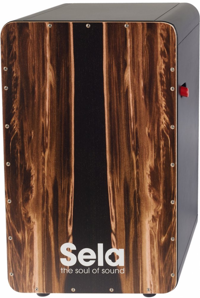 Profesionální cajon, který nabízí mimořádně silné matné černé tělo, vyrobené z 15-mm tlustého 11-vrstvého březového dřeva, které zaručuje optimální produkci zvuku a jehož kontury jsou zvýrazněny černou barvou. Vysoce kvalitní šrouby vytvářejí brilantní kontrasty s výjimečnou zrnitostí dřeva hrací plochy a černým zadním dílem. Jasný obrys kolem herního povrchu vkusně doplňuje výraznou hnědou barvu. Pevné, zaoblené javorové rohy a hrací povrch Sela Hard Splash poskytují příjemný pocit z hraní. Díky konstrukci je možná následná výměna hracího povrchu. Mechanismus Sela Pro Snare On/Off se používá velmi jednoduše - stačí zmáčknout páčku pro snare pro aktivování či deaktivování snare struny. Ergonomicky optimalizovaná pozice páčky umožňuje extrémně její rychlé přepínání během hraní. Když je snare struna deaktivována, hráč má k dispozici tradiční peruánský cajon s přesnou odezvou a zvuk podobný nástroji conga. Pokud hráč strunu zpětně aktivuje, má k dispozici typický zvuk Cajon Sela s výjimečnými basy a zvukem snareu. Zvuk tohoto mechanismu může být zeslaben nebo zesílen podle potřeby. Díky němu je také možné přidat druhou snare strunu. Nástroj má také individuálně nastavitelné clap rohy, které doplňují ostrý snare zvuk a výjimečné basy, a protiskluzové pryžové nohy. Rozměry: cca. 470 x 300 x 300 mm.