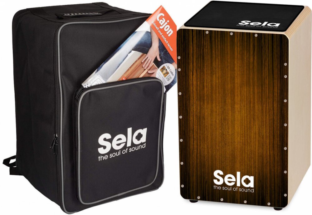 Výhodné balení, které obsahuje vše co potřebujete k hraní na Cajon. Set obsahuje cajon ze série Sela Varios - model v barevném provedení Brown, Sela Cajon Pad Black - měkký pad určený k sezení, Sela Cajon Bag Black - odolnou nylonová tašku a instruktážní knížku Super einfach Cajon lernen.