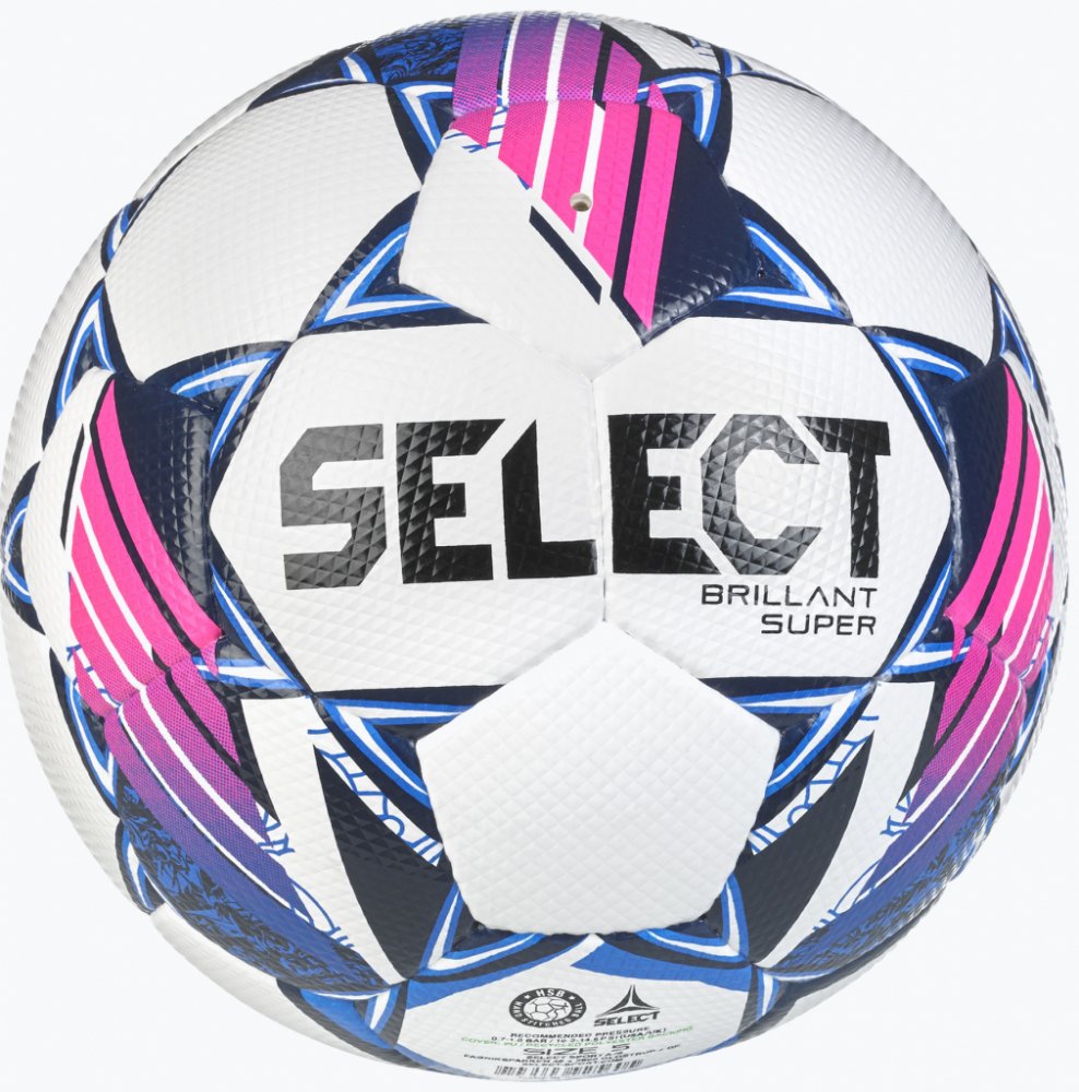 Fotbalový míč Select je určen pro hry nejvyšší úrovně. Trojrozměrný diamantový povrch je vyroben ze speciálně vyvinutých materiálů. Laminované, ručně šité 32. Speciální technologie utěsnění švů snižuje absorpci vlhkosti. Double-Lock ventil zabraňuje ztrátě vzduchu. Latexový měchýř Zero-Wing si zachovává svůj kulovitý tvar a elasticitu. 2 mm silná pěnová podšívka. Míč bude fungovat na površích s přírodní trávou. Vysoká kvalita je potvrzena certifikátem FIFA QUALITY PRO.