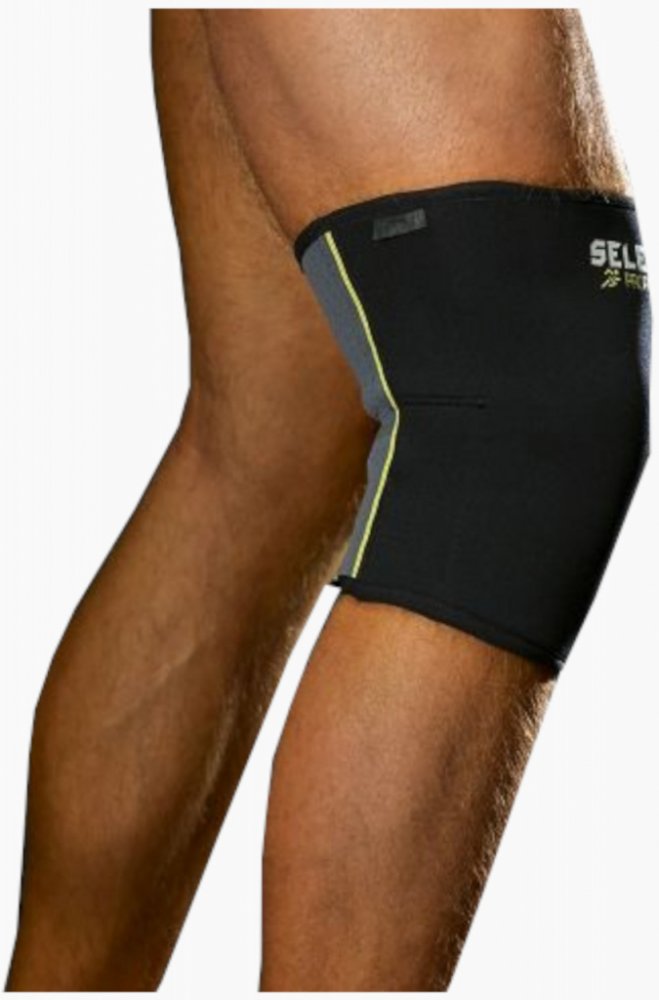 Bandáž na koleno Select, která zároveň funguje jako chránič proti otřesům a pádům. Bandáž je vyrobena ze 4 mm silného SBR neoprenu s anatomickým tvarem pro lepší flexibilitu. Zadní část SBR neoprenu je perforovaná pro zvýšení pružnosti a prodyšnosti. Bandáž poskytuje kolenu podporu a ochranu. Zároveň jej zahřívá a udržuje v teple.