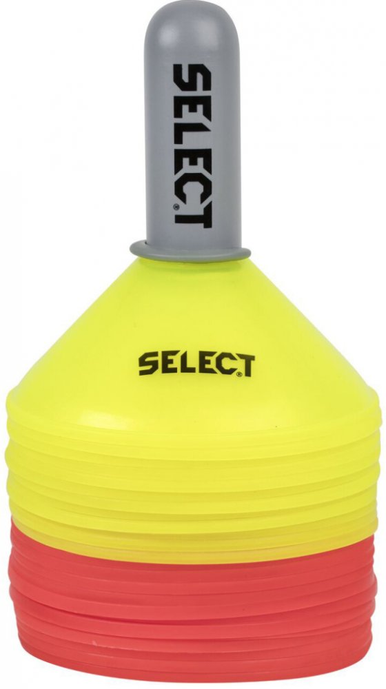 Select Marker výrazné značící kužely ocení jistě každý trenér jako skvělou pomůcku. Kužely jsou umístěny na praktickém držáku se sponou. Díky nim teď bude každý trénink ještě účinnější. V sadě naleznete 12 kusů žlutých a 12 kusů červených kuželů každý o výšce 8 cm a hmotnosti 42 g. Jsou umístěny na stojanu, jehož součástí je spona, která zamezí rozsypání uklizených kuželů. Klíčové vlastnosti kužel...