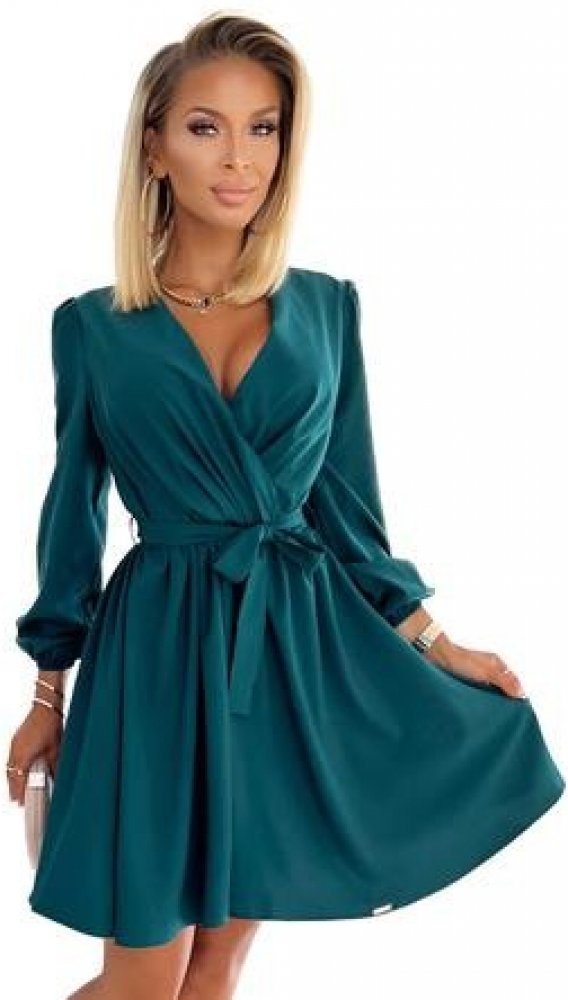 95% polyester 5% elastan společenské Numoco zavinovací zelená s výstřihem do V
