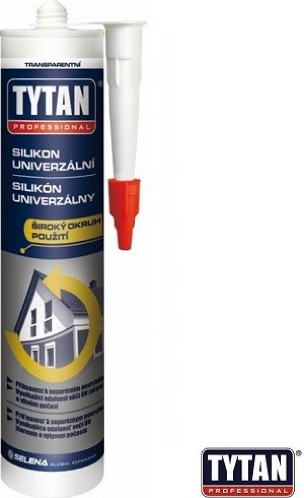 TYTAN Univerzální elastický silikon 280 ml je univerzální silikon jednosložkový, snadno aplikovatelný tmel, který má víceúčelové využití. Spoj je trvale elastický. Silikon je určen pro vnitřní i vnější vyplňování a lepení. Je skvěle přilnavý k většině stavebním materiálům, jako je sklo, keramika, dřevo, většina plastů. Výhody Vynikající přilnavost k většině materiálů Vynikající fyzikální vlastnosti Tvárný, pružný, trvanlivý spoj s nízkým smrštěním Odolný vystavením slunečním paprskům, sněhu a ozonu, odolnost zůstává po mnoho let Široký okruh použití ve stavebnictví Okamžitě použitelný Velmi jednoduchá aplikace Aplikace Tmelení obvodových spár rámů oken a dveří Chrání PU pěnu proti slunečním vlivům - UV zářením Tmelení dilatačních spár a spojů Tmelení výloh, pultů a cedulí Tmelení elektrotechnických kabelových průchodů a vodičů Tmelení v domácnostech a kutilských činnostech Tvar spojeŠíře spoje Silikon univerzální by měla být 6mm. Pro spoje s šíří od 6 do 12mm, je doporučena hloubka tmelové vrstvy 6mm. Pro spoje s šířkou nad 12mm, poměr šíře k hloubce doporučen v poměru 2:1 do maximální hloubky 12mm. Pro požadavek lemových spojů, použít minimálně 6mm tmelu na každý z podkladů. Pro hlubší spáry použít TYTAN Výplňový provazec. Příprava povrchůPracovní povrchy musí být čisté, bez volných částic, starých a nesoudržných nátěrů, nečistot jako je prach, rez, olej, živice, bitumeny a led. Kovy musí být bez rzi. Odstranit zbytky starých materiálů, především volné a nedostatečně držící nátěry. Povrchy čistit a odmašťovat acetonem, isopropanolem, etanolem (kovy a skla), nebo saponátem (umělé hmoty). Před aplikací musí být povrch suchý. Hrany tmelených povrchů zabezpečit TYTAN maskovací páskou. V případě aplikace na dřevo obsahující lak na bázi rozpouštědla a neznámé substráty se doporučuje provést test před vlastní aplikací. Kartušeodřízněte plastovou špičku kartuše těsně nad závitem, dle šířky spáry seřízněte i aplikační špičku pod úhlem 45º v průřezu šíře spáry. Nasaďte do aplikační pistole a aplikujte. Silikon aplikovat s patřičným tlakem pro zabezpečení okamžité přilnavosti. Ihned po aplikaci vyhladit spáru špachtlí nebo silikonovou stěrkou navlhčenou v TYTAN Prostředek pro zarovnání povrchu nebo v mýdlovém či jarovém roztoku, po té odstranit maskovací pásku. ČistěníOdstranění přebytečného silikonu je možné dokud silikon nevytvrdne. Po vytvrzení je možné silikon odstranit TYTAN Odstraňovačem silikonu, nebo mechanicky, například nožem. Silikon universální by neměl být použit- V kontaktu s kovovými povrchy podléhající korozi - během vulkanizace se uvolňuje kyselina octová.- Na přírodní kameny - mohou být zbarveny při kontaktu se silikonem.- Na tmelení spojů a montáže zrcadel - možnost koroze povrchu zrcadla.- Na bitumenové nebo asfaltové podklady a umělé hmoty, které obsahují plastifikátory. - Na místech, které mohou přijít do přímého kontaktu s potravinami.- Na akvária. Protože se uvolňuje kyselina octová během vytvrzování, nepoužívejte TYTAN Silikon univerzální na substrátech jako jsou beton, cement nebo malta. V těchto případech se doporučuje použít TYTAN Silikon stavební. Počet kusů v kartonu: 12 ks