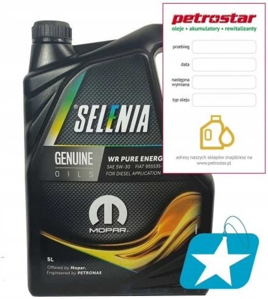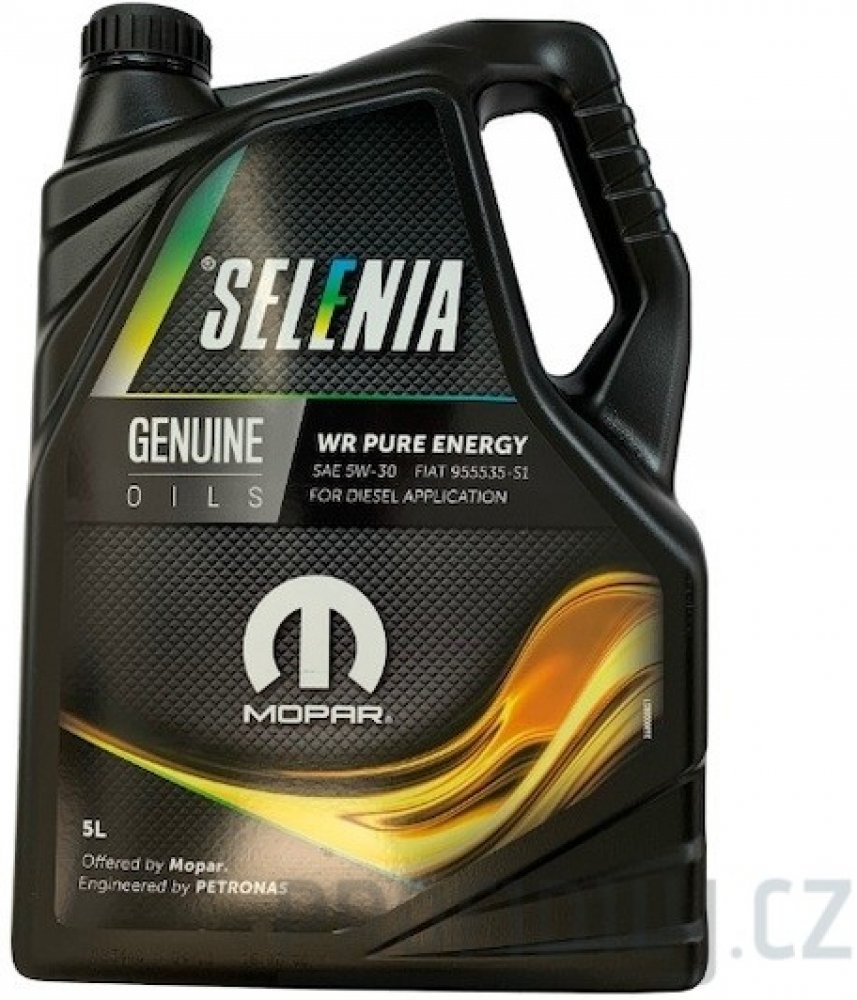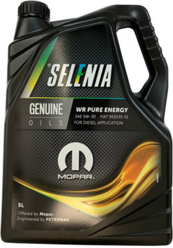 Selenia WR Pure Energy je plně syntetický motorový olej, nového složení, který odpovídá novým požadavkům nejmodernějších motorů diesel. Převyšuje specifikaci ACEA C2, zamezuje vzniku karbonu, který vzniká spalováním. Zamezuje zanešení filtru pevných částic.